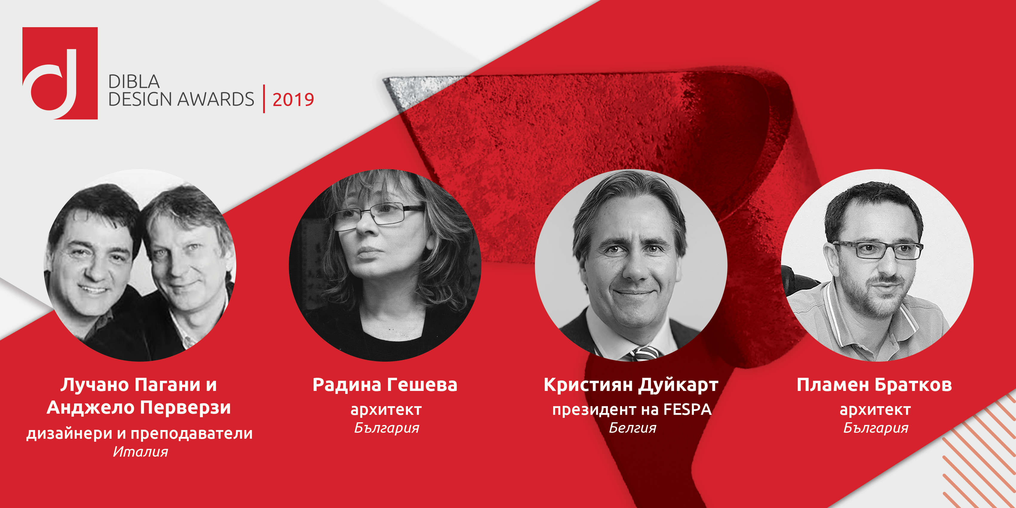 За трета поредна година в журито на Dibla Design Awards откриваме италианските дизайнери Лучано Пагани и Анджело Перверзи. Двамата работят съвместно с редица световноизвестни италиански и международни компании като Molteni & C, FLOS, SKITSCH, Fontana Arte, SLAMP и Frau Chair. Дизайнерите печелят и множество отличия и награди за свои проекти за вътрешно преустройство, архитектурен и светлинен дизайн, както и престижната Compasso d’Oro.