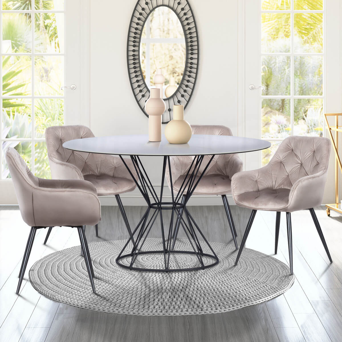 Функционална и изключително модерна, KRAG притежава масивна основа от праховобоядисан метал, която мигновено привлича окото. Снабдена е с въртящ се разтегателен механизъм, благодарение на който лесно можете да промените както формата, така и размерите ѝ. Визията ѝ се допълва от красив керамичен плот с интересни шарки.