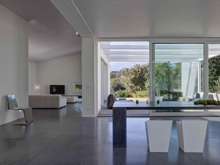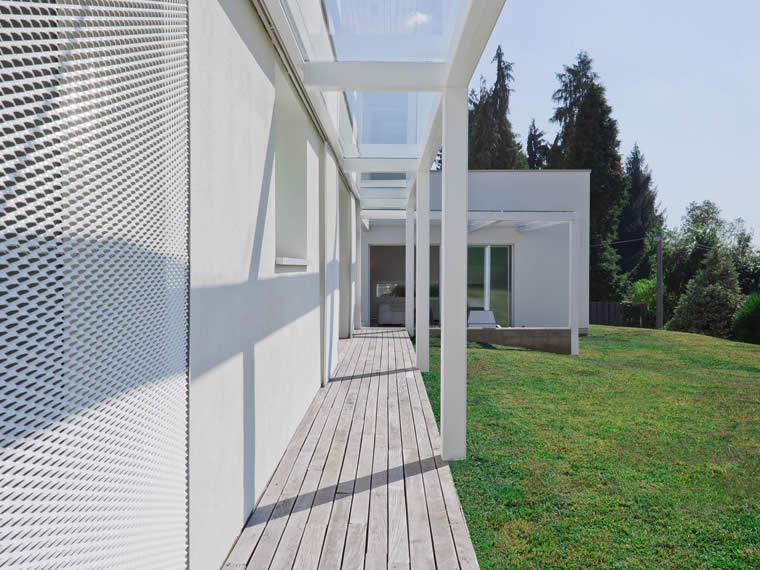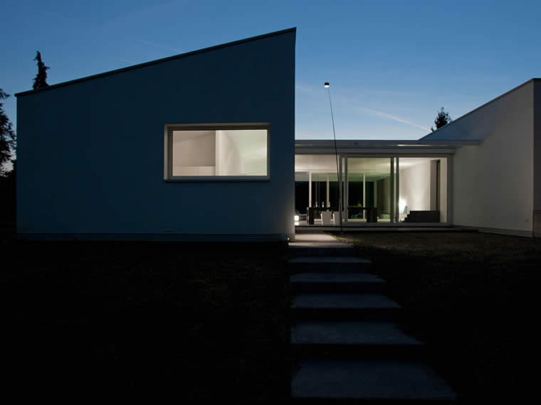 Къщата Тека е проект, по който работех последните няколко години и който беше открит преди няколко месеца. Целта беше да се възстанови малка провинциална сграда на хълмовете на Биелла в Италия. Проектът се основава на композиционно преобръщане, което изнася малкия предварително съществуващ обем навън, дематериализирайки го и пораждайки нова функция на терена. Селският зид се превръща в основа, във връзка със земята и мястото, а върху него израства нова лека и прозрачна инверсия: бетонна структура, открита към пейзажа, с две широки хоризонтални крила и стъклена „кожа“, напълно отваряема, поместваща целия обем.Тази работа се корени в мястото и в равновесието с него, но същевременно е просмукана от нови възможности и връзки.Отношенията между минало и настояще, между работа и среда, се уравновесяват, без да се променя размерното равновесие на мястото, засилвайки стойността на заобикалящата атмосфера и превръщайки се в културна и зрителна отправна точка.