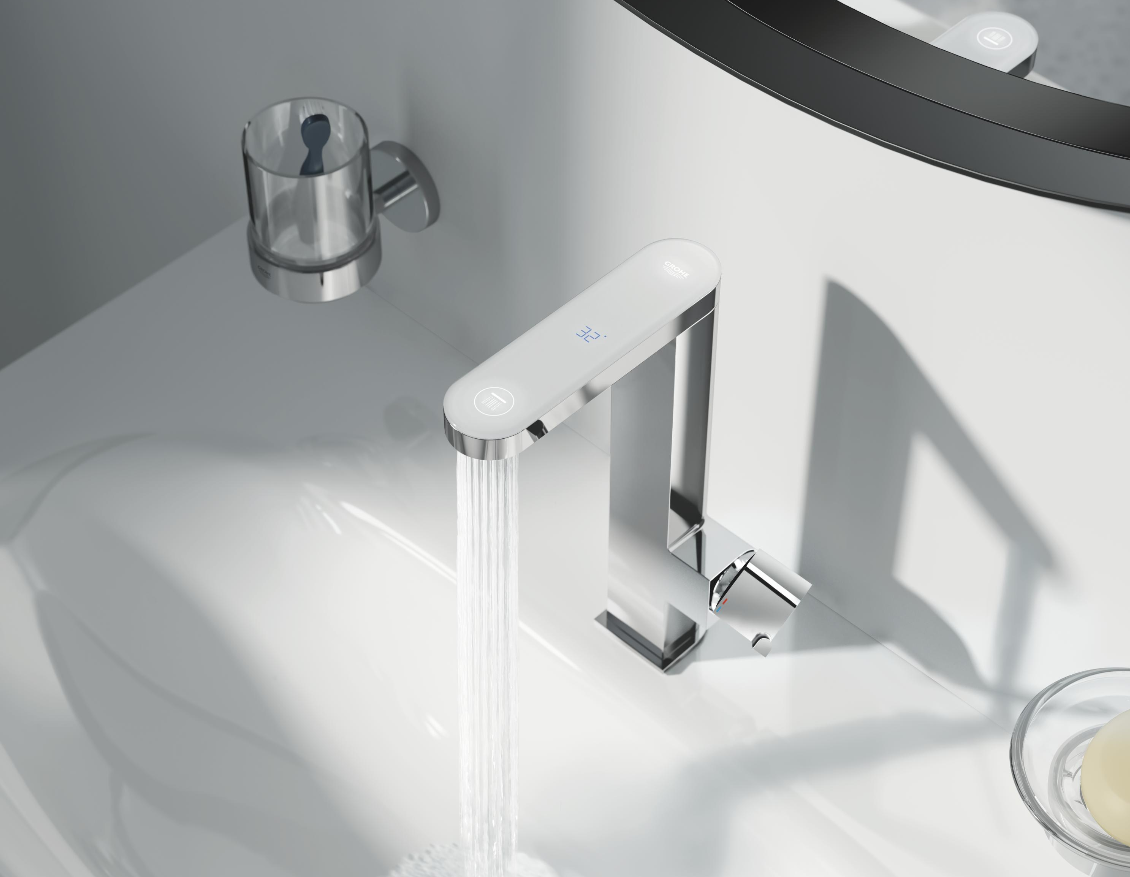 С освежаващо различен дизайн, новата цялостна серия продукти GROHE PLUS осигурява ново ниво на ергономичен комфорт и практични функции. Акцентът в гамата са иновативните смесители с LED дисплеи, показващи температурата на водата. LED индикаторът, поставен в горната част на смесителя, позволява само с един поглед да разберете температурата на водата, а когато я спрете, дисплеят изчезва, оставяйки безупречния вид на смесителя непроменен.