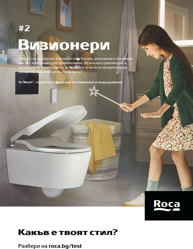 Банята Roca е умна, осигурява максимален комфорт и хигиена. Новото поколение In-Wash® умни тоалетни Roca са с много функционалности – системи за измиване, подсушаване и неутрализиране на миризми, гарантиращи още по-голям комфорт; управление с приложение; UV дезинфекция и др. Моделът In-Wash® Inspira се комбинира с тънките Fineceramic® умивалници Inspira. Предимствата са цялостна хигиена, максимален комфорт, персонални програми, лесна употреба и общ стил. Хит е последната иновация, съчетанието In-Wash® & In-Tank®. Технологията In-Tank® интегрира казанчето в самата тоалетна чиния. Монтажът на In-Wash® е лесен със специалните структури Duplo Smart.