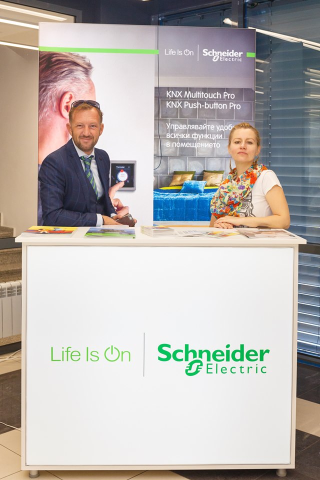 На събитието "Шнайдер Електрик" представи своите решения за умен дом с акцент върху новите интерфейси за управление – тъч бутониерата Multitouch Pro. В нея могат да се заредят до осем различни екрана, които се сменят интуитивно – само с едно приплъзване, като на мобилен телефон. Във всеки от тях може да бъде запаметена конкретна сцена с точни нива на осветеност, температура и т.н. или пък да се управлява някоя от функциите на жилището самостоятелно. Така от един панел можете да командвате лампи, щори, отопление или дори функции за цялото жилище или двора.