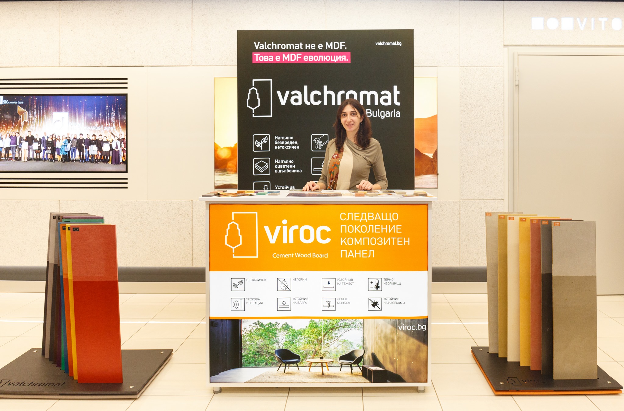 Създаден и произвеждан от 1998 г. в Португалия, със своите качества и предимства, Valchromat е носител на престижни международни награди за иновативен продукт и е предпочитан от дизайнери, архитекти и производители на мебели в над 40 държави на 5 континента. Произведен от изцяло натурални суровини – 100% иглолистна дървесина и органични оцветители, устойчив на влага, с 30% по-висока механична якост и по-малко абразивен спрямо обикновения MDF; напълно оцветен и в дълбочина, без да е необходимо обкантване и каквато и да е обработка; палитра от 10 цвята, 5 дебелини и 4 размера.