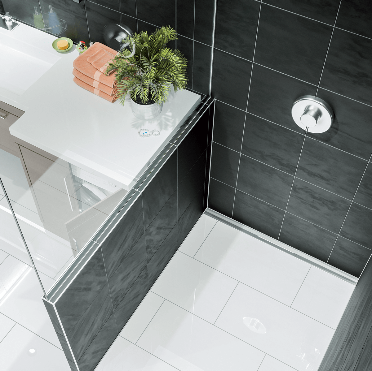In|Floor определя един акцент за дизайн и качество в душ-зоната. Дължината на видимата отточна шина се адаптира точно в банята, от край до край, според идеята на дизайнера.