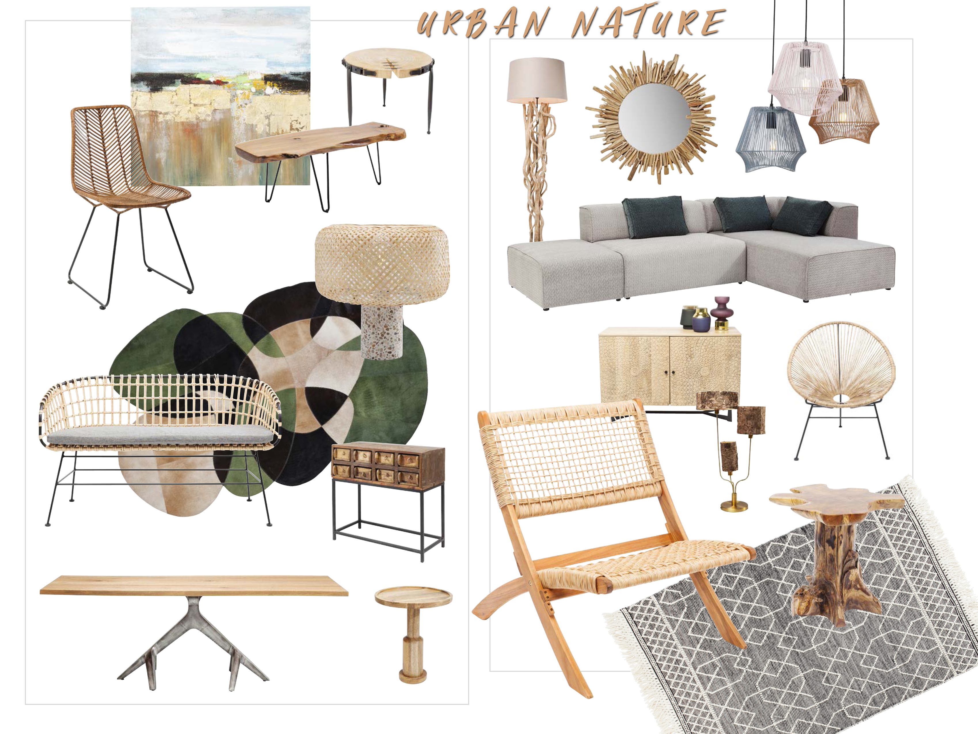 Urban Nature внася душевен мир и ви приканва да се поразходите боси, сякаш сте на плажа, докато сте си вкъщи и стъпвате по вълнени и памучни килими в пясъчни нюанси, в комбинация с дискретни етно мотиви. И не на последно място, тази тенденция отдава заслужено внимание на занаятчийството и ръчната изработка, чиито отпечатък носят много от артикулите от Urban Nature.