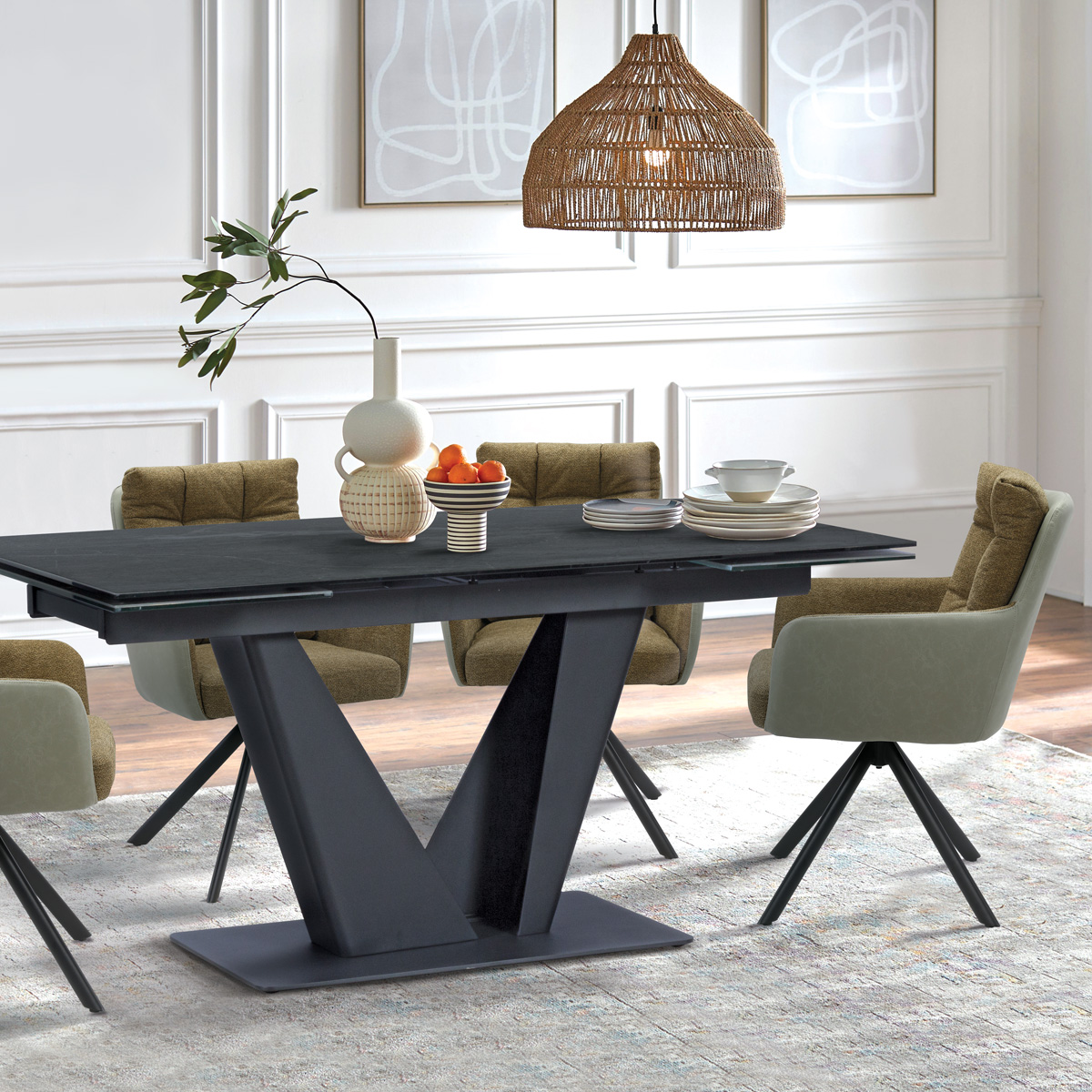 Колекцията трапезните мебели Carmen предлага съвременни и практични решения за всяко пространство за хранене. Тя включва богат избор от маси, с различна форма и стил, подходящи за малки и големи помещения. Част от тях могат да бъдат комбинирани с холни маси с идентичен дизайн за постигане на цялостна и завършена визия. Не по-малко е и разнообразието от трапезни столове, сред които се открояват удобни кресла с 360-градусово въртене. За модерни интериори, компанията предлага и бар столове и маси, идеални за открити кухни и трапезарии.