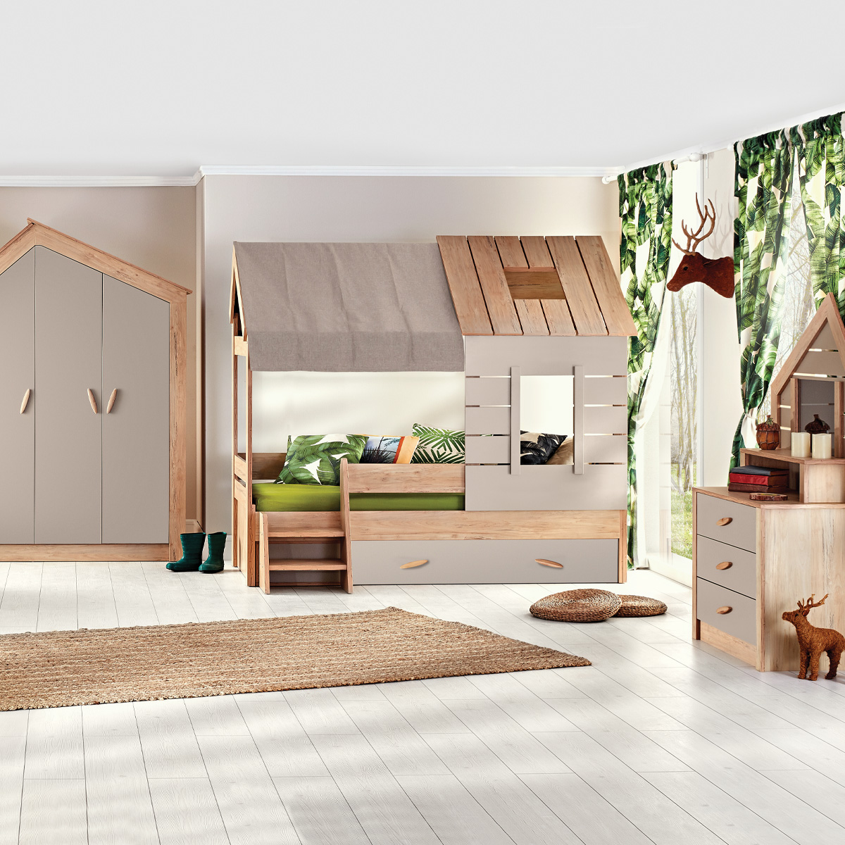 Става ли дума за детската стая, Carmen може да ви предложи цялостно обзавеждане за различните етапи на детството - от новородени до тийнейджъри. Кошари, двуетажни легла, гардероби, бюра, етажерки и аксесоари - всички мебели са проектирани с внимание към нуждите на детето, като осигуряват функционалност и безопасност. С разнообразието от стилове и цветови решения, родителите могат лесно да създадат уютна и вдъхновяваща обстановка за своите деца.