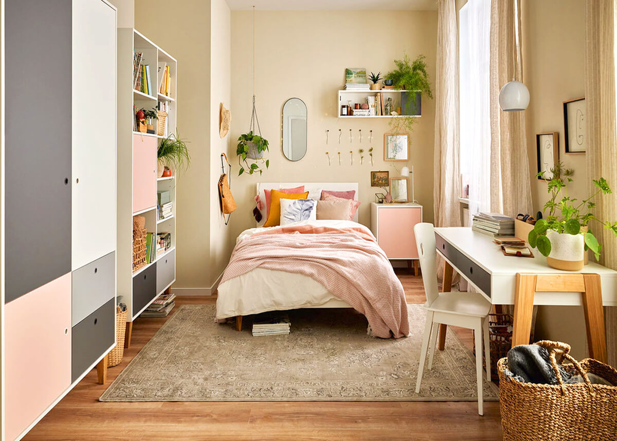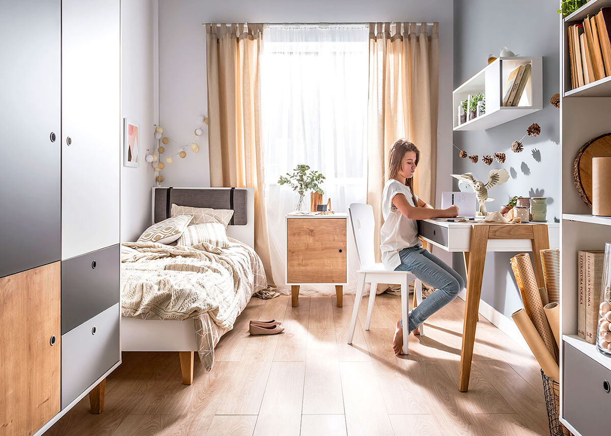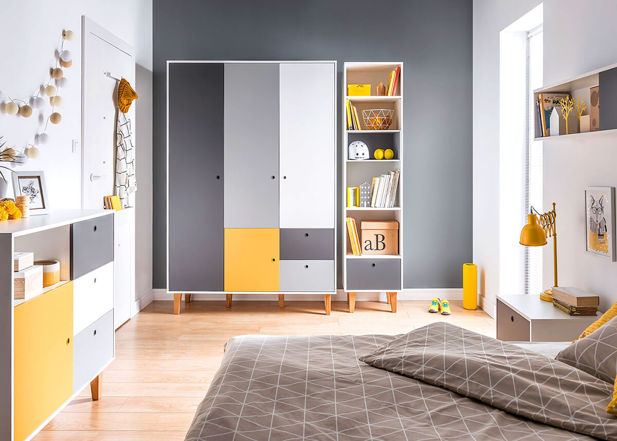 Как се постига тази гъвкавост? С простата и иновативна идея за смяна на цвета на вратите, които могат да се подменят. Колекцията не просто предлага универсални решения. Вместо това тя отстоява индивидуалността, като дава множество цветови възможности на мебелите. Когато тийнейджърът ви пожелае промяна в естетиката на стаята си, той може просто да смени цвета на мебелните врати, като моментално придаде на стаята свеж и младежки вид. С опции като червено, шафран, дъб, черно, розово и небесносиньо, атмосферата на стаята може без усилие да премине от спокойна и ведра до жизнена и енергична или да спре някъде по средата по скалата на настроенията.