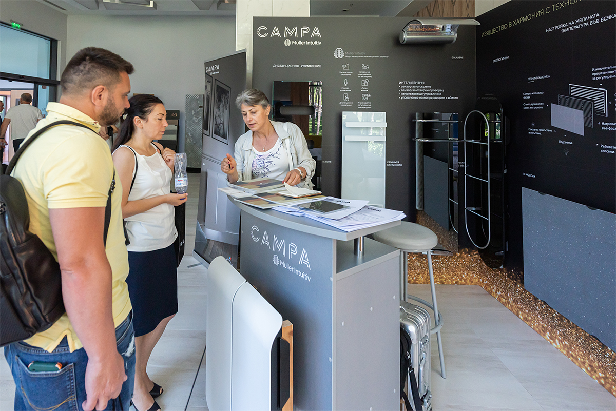 Компанията демонстрира колко важна за тях е околната среда чрез своята продуктова гама. Интерес представляваха примерните решения за всяко едно помещение в дома, предложенията за офиси, ресторанти, барове и хотели. Специален акцент беше поставен върху уникалната технология на радиаторите, възможностите за енергоспестяване и комфорт и опитът на CAMPA при сътрудничество с архитекти и дизайнери в Европа.