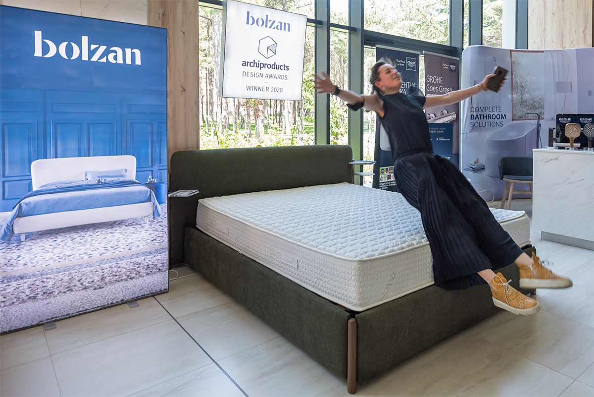 От BOLZAN поставиха акцент върху историята на компанията и тяхната грижа за околната среда. Беше разгледана в детайл спецификата и качеството на използваните материали и с какво те се различават от стандартните такива. Присъстващите видяха и богата продуктова марка на бранда за мебели и аксесоари.