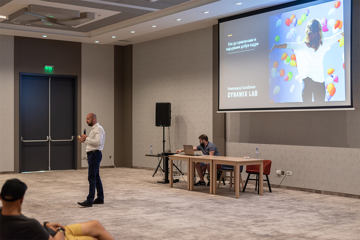 Александър Балабанов е един от най-добрите корпоративни треньори в страната. Той е част от Dynamix Lab (франчайз партньор на 1BC - 1st Business Certificate). Неговият интерактивен тренинг "Как да привлечем добри кадри - мотивирането им и задържането им в екипа" беше създаден специално за това събитие и даде огромна добавена стойност за участниците. Основната му цел беше да помогне на всички в аудиторията да съумеят да изградят успешна промяна към по-добро на личностно ниво и след това да пренесат това към екипите и организациите, на които са начело.
