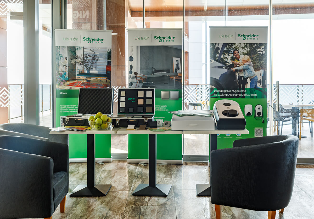 С присъствие в над 100 държави Schneider Electric е неоспорим лидер в енергийното управление средно и ниско напрежение, в енергийната сигурност и системите за автоматизация. За деловия интериор и дома Schneider Electric предлага богата палитра от функционалности, вградени във вълнуващ дизайн. Управлението на осветлението, щорите, отоплението и останалите системи е достъпно през потребителски интерфейс от централен стенен панел или от мултифункционални бутони в изисканите серии Merten и Unica Class. Чрез мобилните им приложения комфортът и бързината на цифровия свят обогатяват жизнените пространства тук и сега.