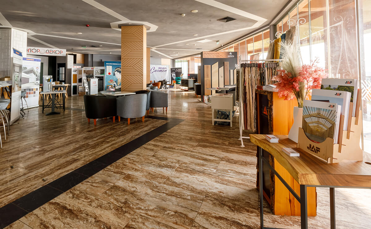 На презентацията си, фирмата представи разнообразие от иновативни продуктови линии, включително винилови подове, Amaron Superiore.Това уникално предложение включва над 2 м SPC дъска със синхронна структура, която със сигурност ще впечатли, чисто нова колекция, Amaron WOOD и Mineral Dryback, първият лепилен под с минерална сърцевина, предлагащ несравнима комбинация от издръжливост и стил.