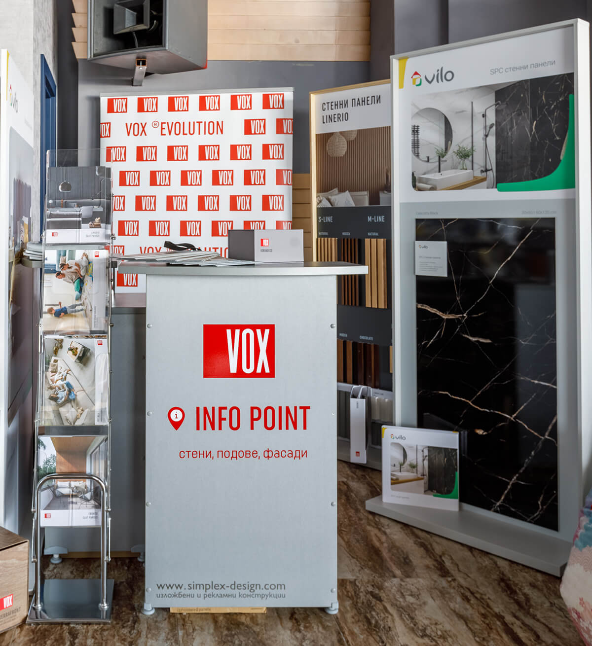 На щанда си, Вокс Профиле България ЕООД представиха богата гама от декоративни стенни панели Kerradeco, Linerio, Тапицирани панели, както и премиалните, водоустойчиви SPC стенни панели. Гостите успяха да се запознаят и с останалите продукти на бранда, подови настилки Viterra, Rigid, както и с подовите первази Еspumo и Evera.