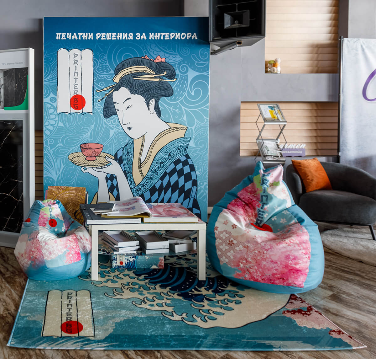 Принтер.БГ презентира своята дейност с впечатляваща визия на щанда, и представи набор от печатни решения за интериора. Сред които са уникална технология за създаване на структурни тапети по индивидуален дизайн, и разнообразие от текстилни тъкани за декорация.