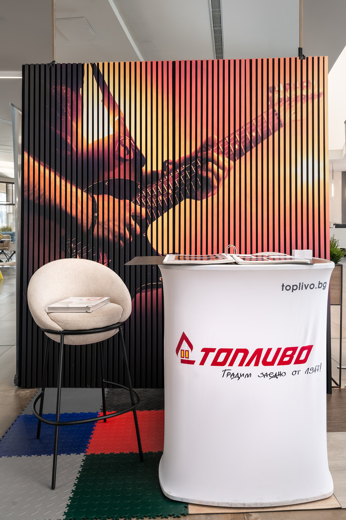 На щанда си, фирма Топливо АД представи своите Fibrotech -акустични панели с множество вариации на форми, цветове и дизайн и Dolle – световен лидер в производството на тавански , вити и модулни стълби .