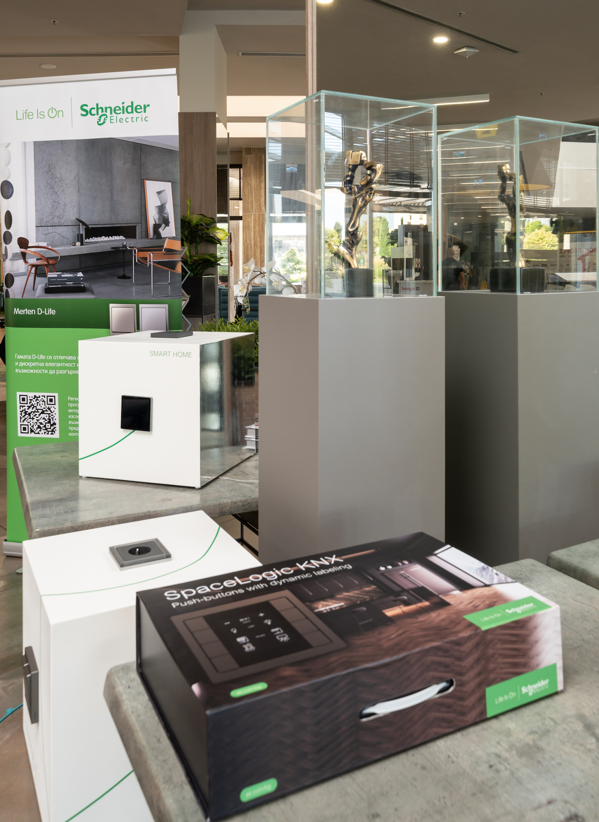 С присъствие в над 100 държави Schneider Electric е неоспорим лидер в енергийното управление средно и ниско напрежение, в енергийната сигурност и системите за автоматизация. За деловия интериор и дома Schneider Electric предлага богата палитра от функционалности, вградени във вълнуващ дизайн. Управлението на осветлението, щорите, отоплението и останалите системи е достъпно през потребителски интерфейс от централен стенен панел или от мултифункционални бутони в изисканите серии Merten и Unica Class. Чрез мобилните им приложения комфортът и бързината на цифровия свят обогатяват жизнените пространства тук и сега.