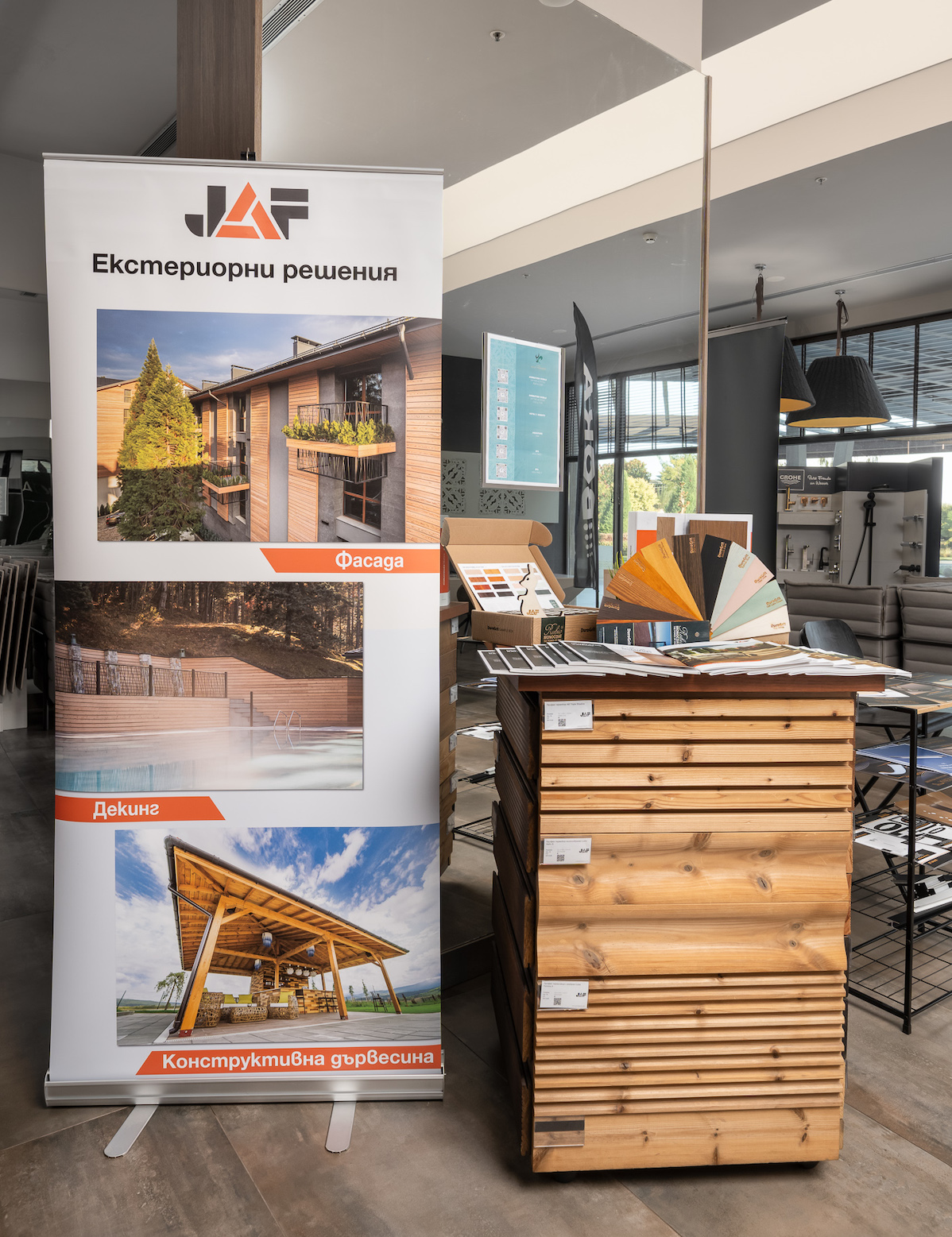 Вече над 16 години ЙАФ България е водещо име у нас в доставката на висококачествени решения от дърво за интериорния и строителния бранш. С шоуруми във Варна, Мусачево, Пловдив и най-новия в София, компанията предлага богат асортимент от дървесни продукти в страната - над 6000 артикула. Архитекти, дизайнери, инвеститори, мебелисти и дърводелци намират в ЙАФ надежден партньор с експертни консултации и услуги. На Dibla Design>People ЙАФ България отново се утвърди като посланик на дървесината.