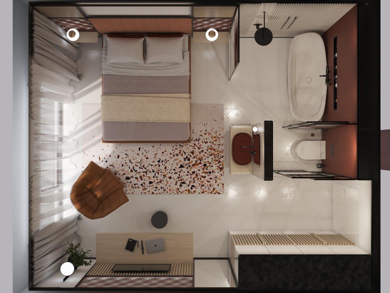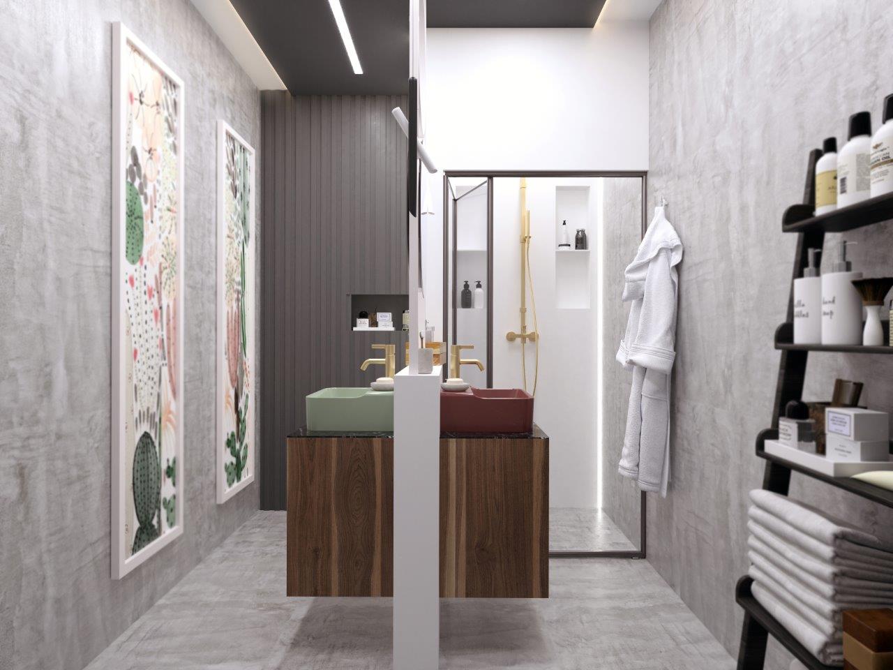 Дизайнерските хотелски бани са изпълнени с Atelier – колекцията, родена в сътрудничество с италианското дизайнерско бюро Palomba Serafini Associati – една колекция, която прехвърля своеобразен мост между наследството, модерния дизайн и дизайна на бъдещето.