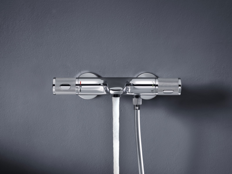 Сега може да се насладите на серията Grohtherm 800 Cosmopolitan, която предлага минималистичен дизайн с ергономични метални ръкохватки. Тази серия комбинира високо качество, иновативна технология и красив дизайн на конкурентна цена. Това е най-компактният термостат в портфолиото на марката, а елегантният дизайн е предпочитан избор за модерни пространства в архитектурен стил. Прецизното управление на термостата е гарантирано от специалните ръкохватки GROHE Metal Grip. Опорният ръб от обратната страна на металната ръкохватка улеснява управлението, дори когато сте със сапунисани ръце.