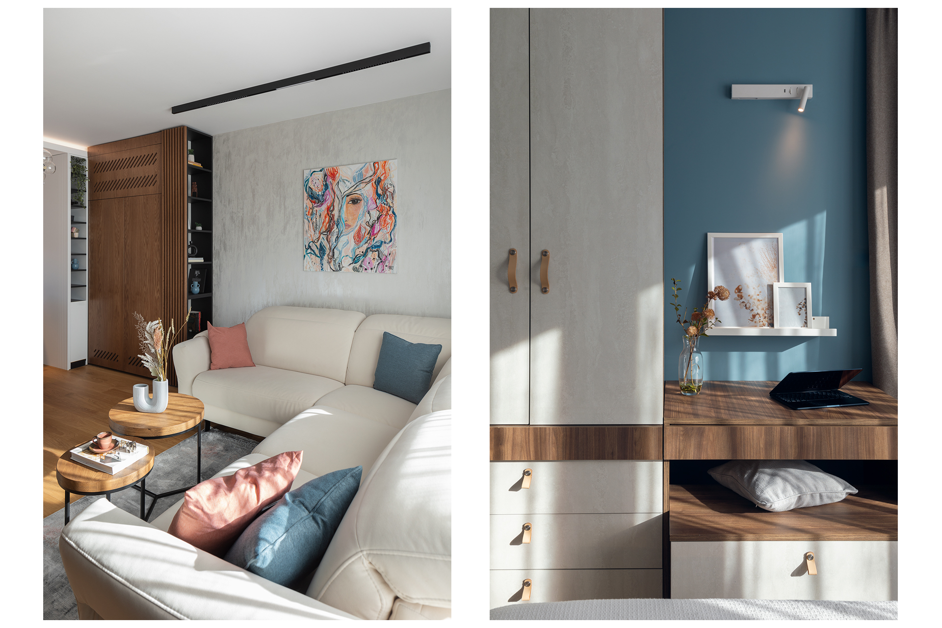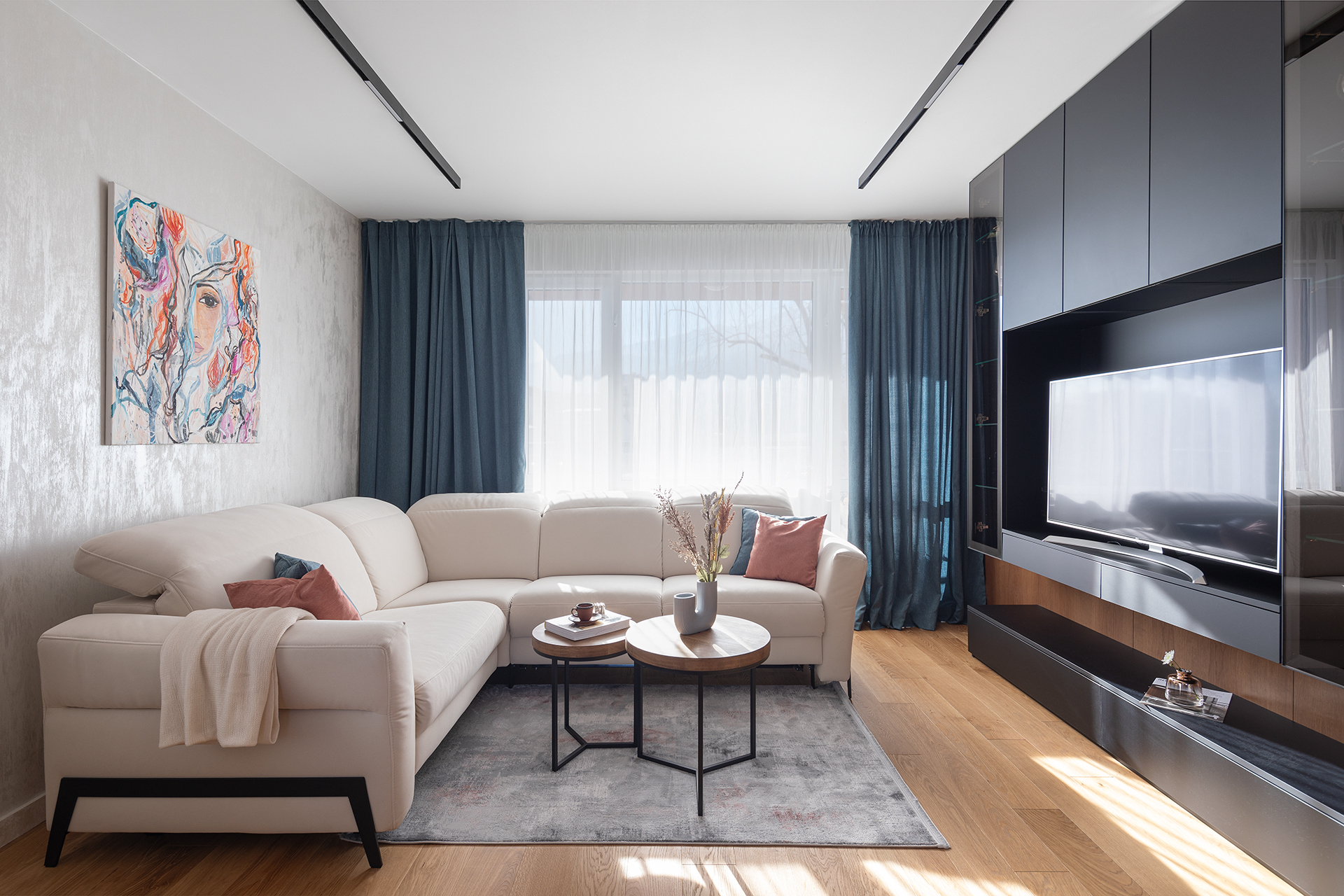 The project presents a modern apartment where light and clean lines create a sense of comfort and elegance. The main focus in designing this 69 sq.m. home was optimizing the space according to the residents’ needs. The clients were satisfied, as their wishes were fulfilled and the budget was used efficiently without compromising quality.