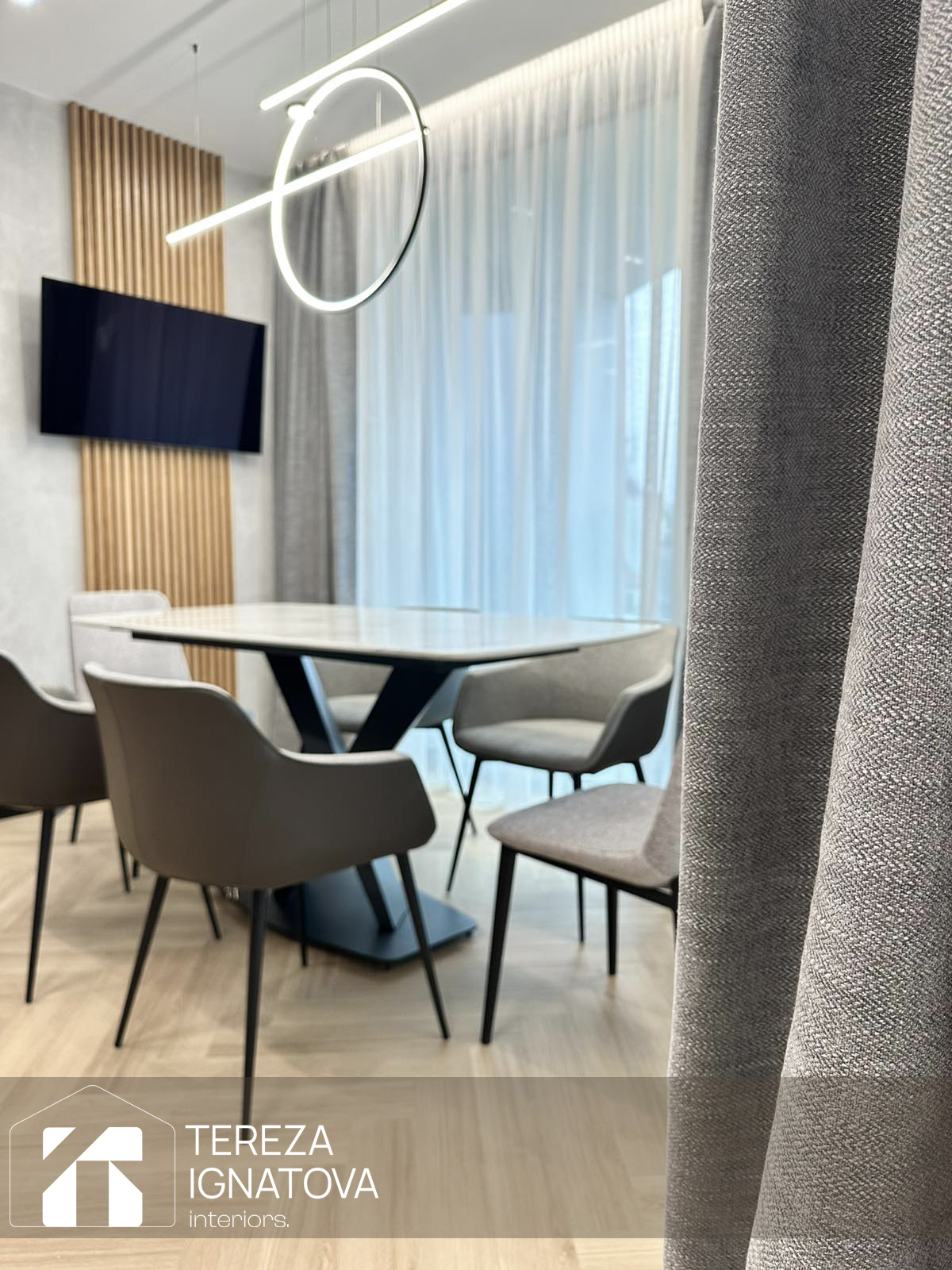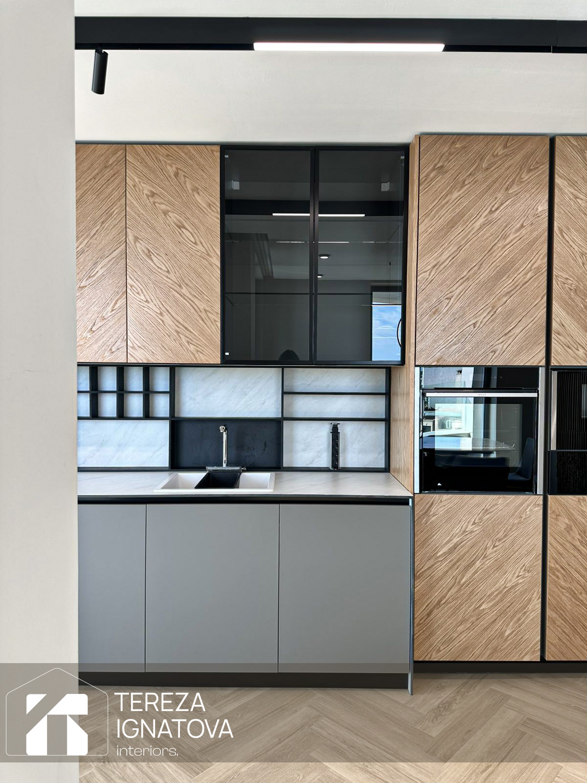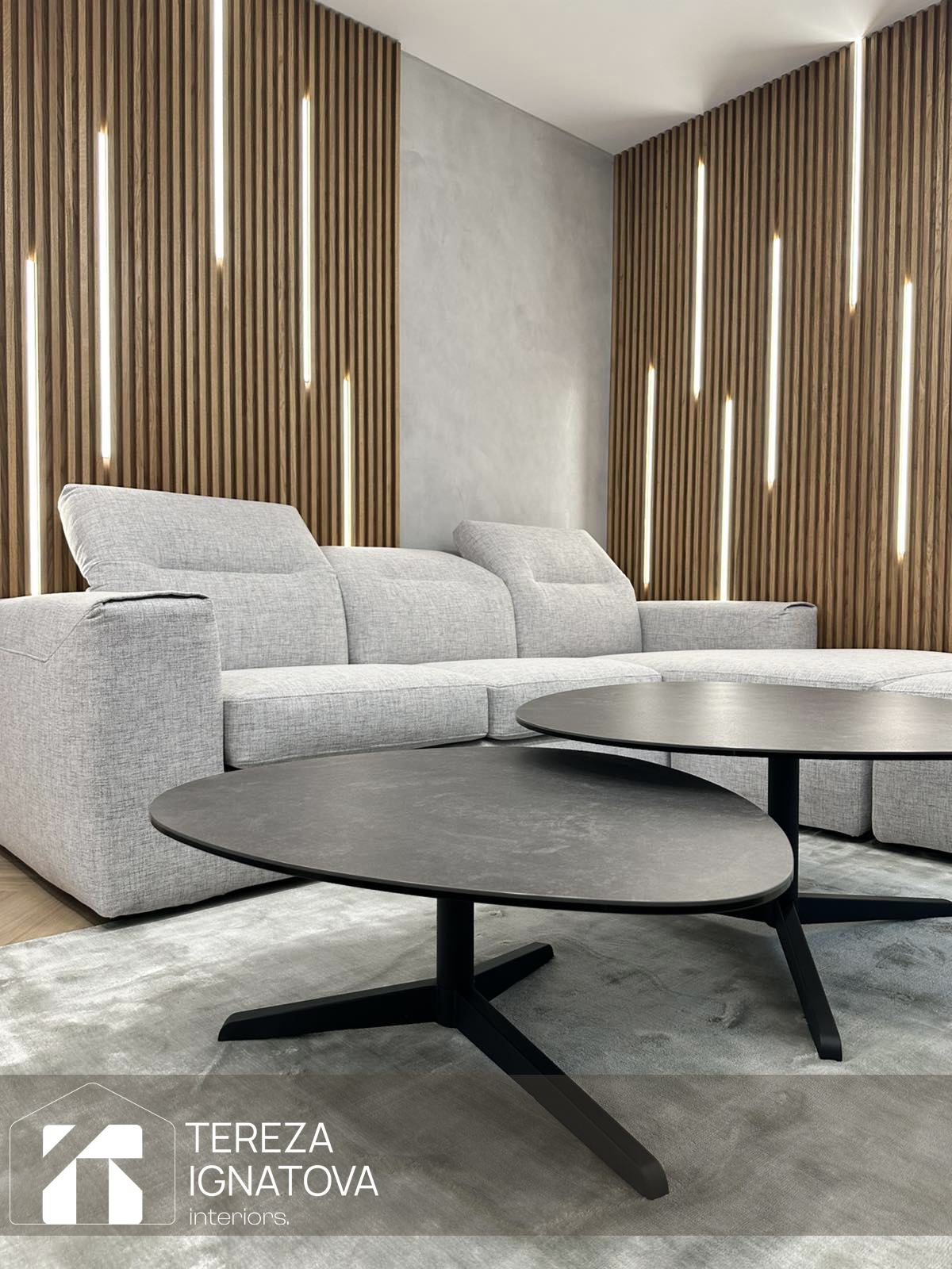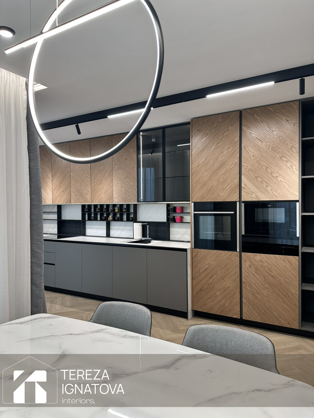 Залагайки на топъл естествен фурнир, в съчетание с разнообразие от сиви нюанси в интериора, черни метални акценти и строго съвременен, изчистен дизайн, днес този исторически за студиото проект, е вече реалност.