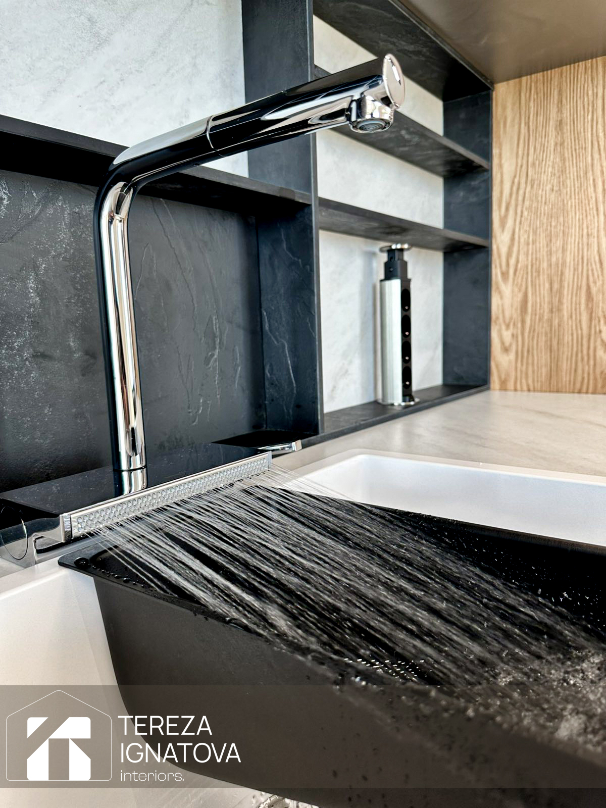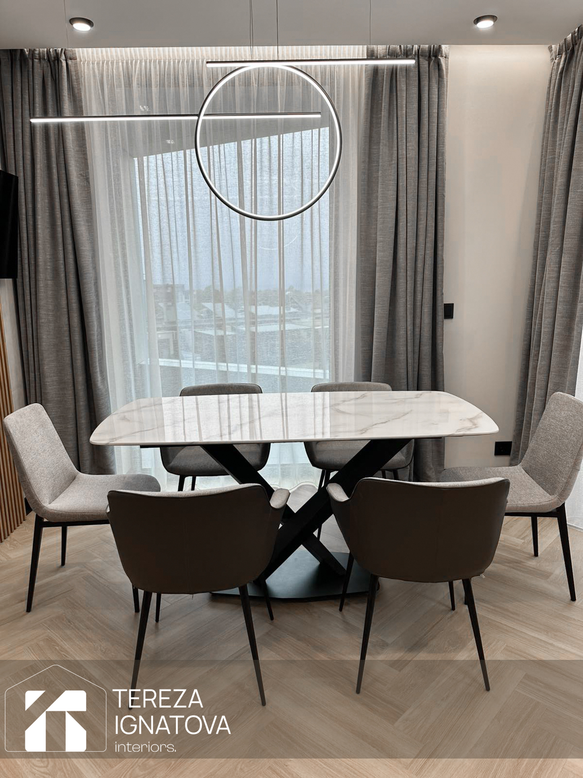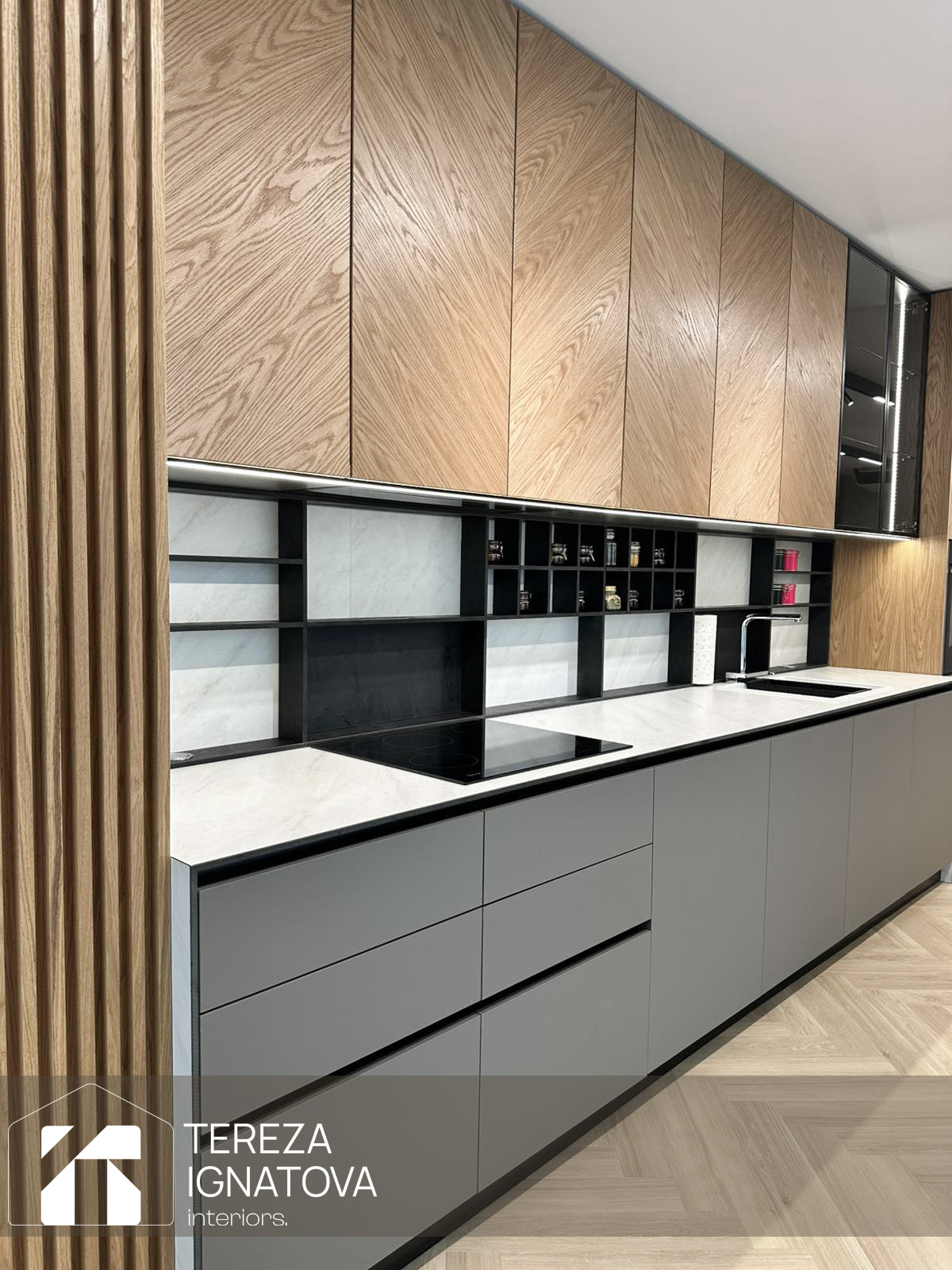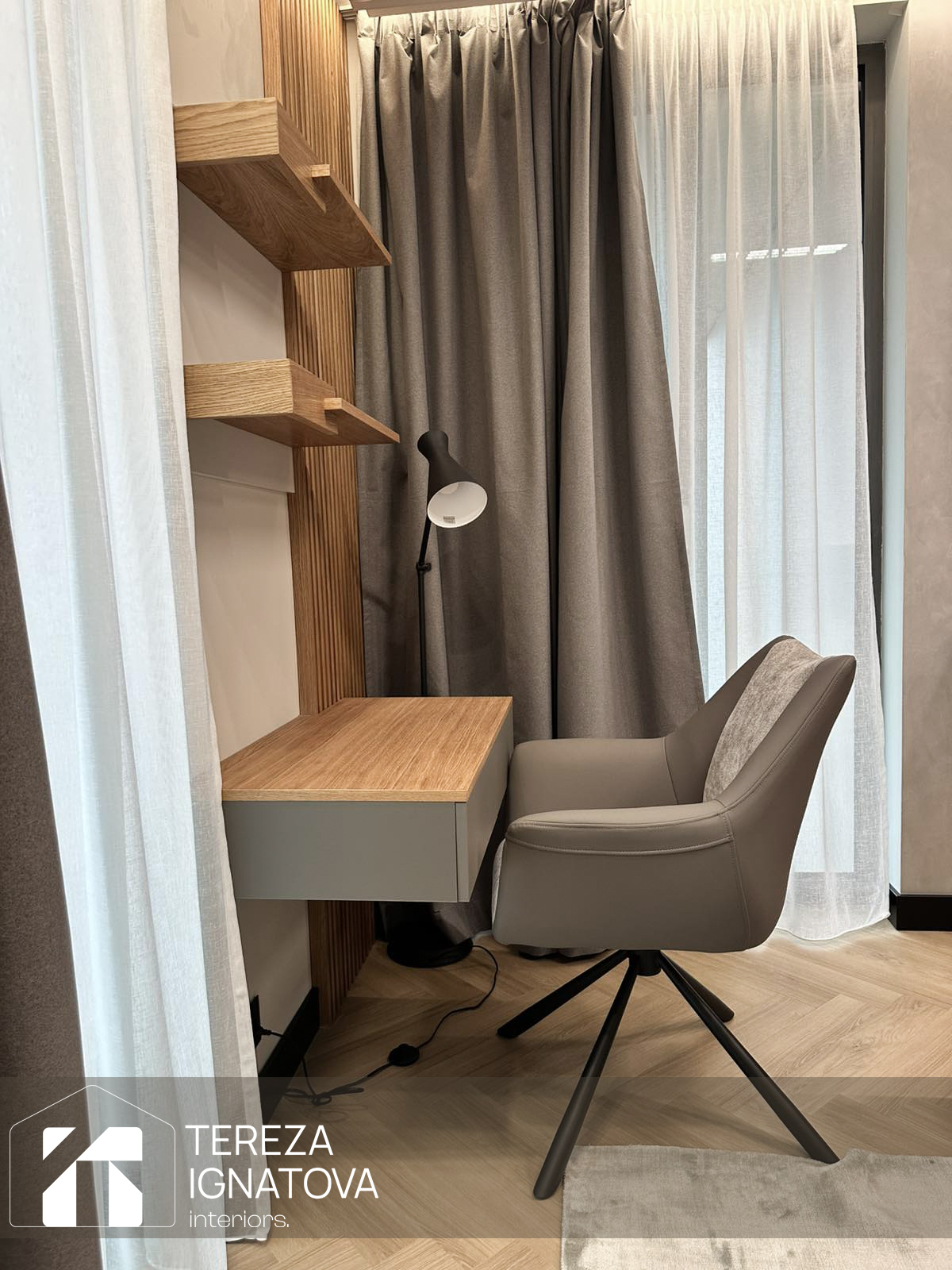 Залагайки на топъл естествен фурнир, в съчетание с разнообразие от сиви нюанси в интериора, черни метални акценти и строго съвременен, изчистен дизайн, днес този исторически за студиото проект, е вече реалност.