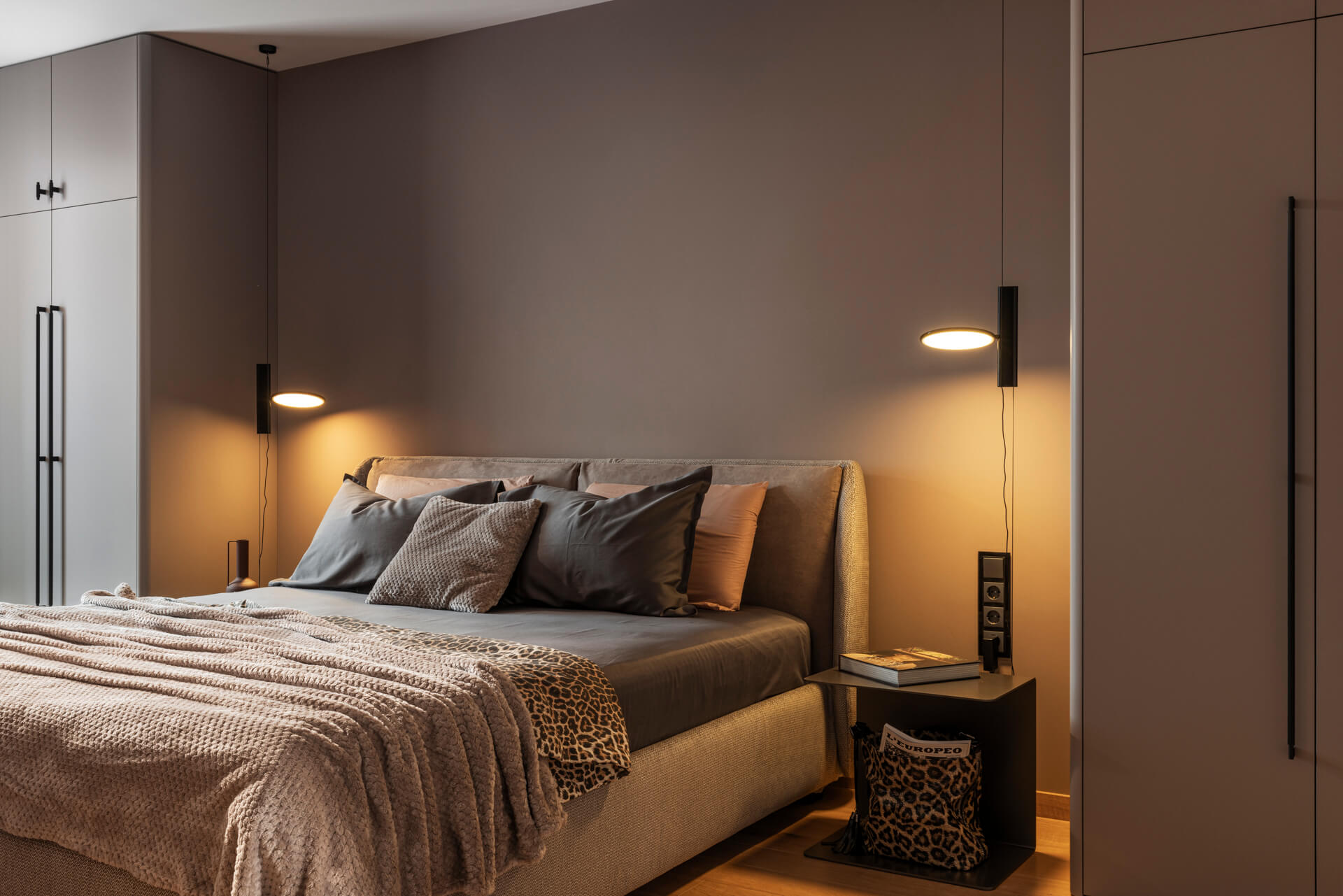 В новопостроена жилищна сграда в София, последните жилищни етажи предлагат не само красива гледка, но и пространства облени в светлина. Именно там, на високо, щедро се разлива този интериор, изпълнил задачата да излъчва характер и индивидуалност, без да губи от комфорта и функционалността.