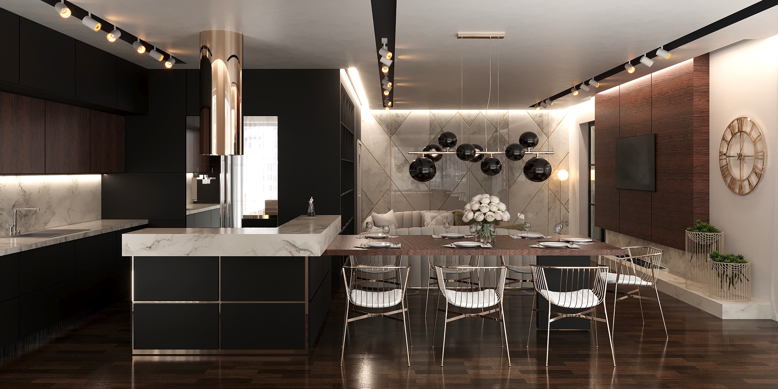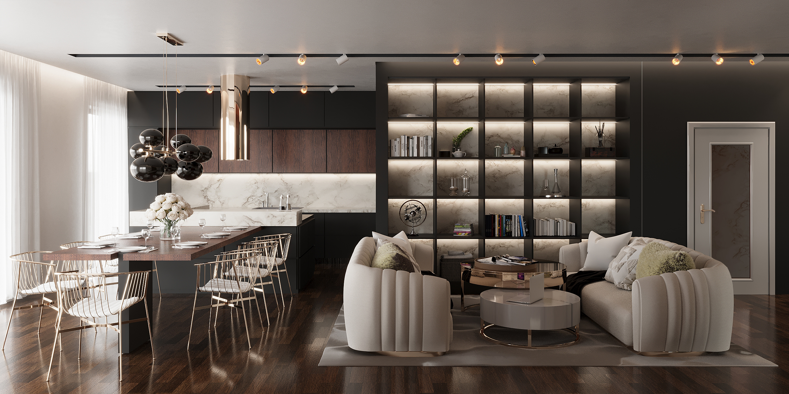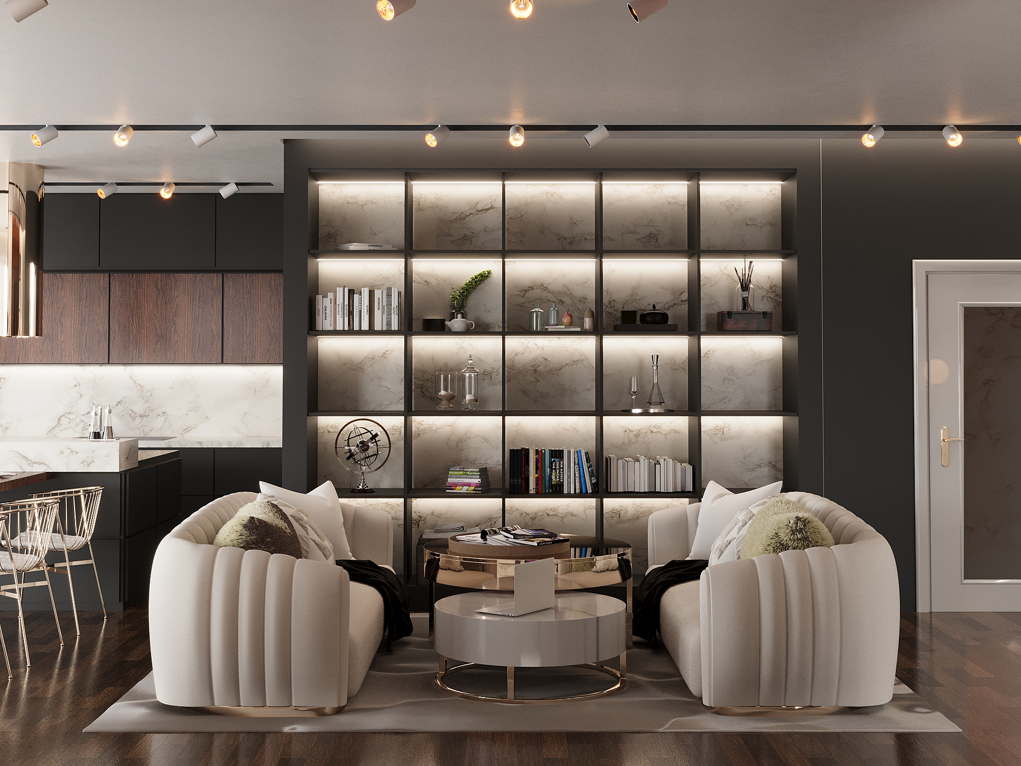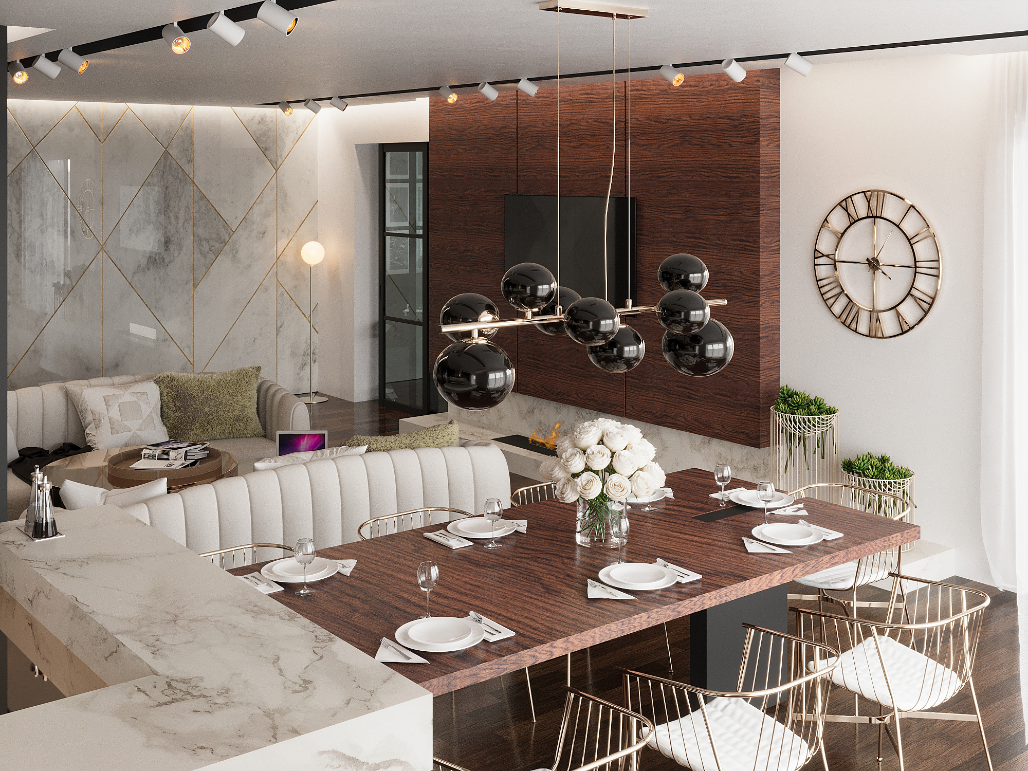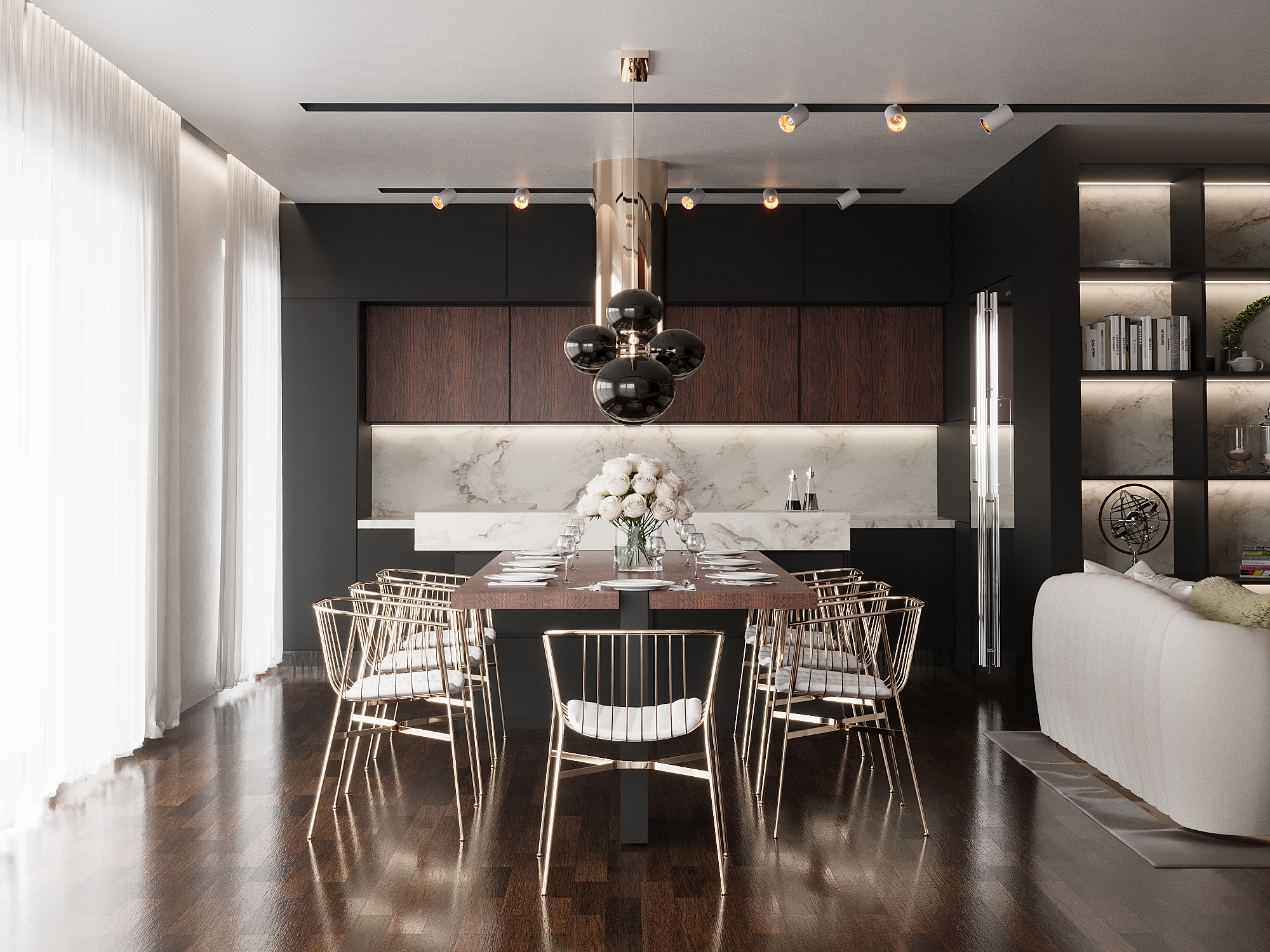Този проект представлява съчетание на модерен стил с луксозно излъчване, което създава уютна и впечатляваща обстановка.