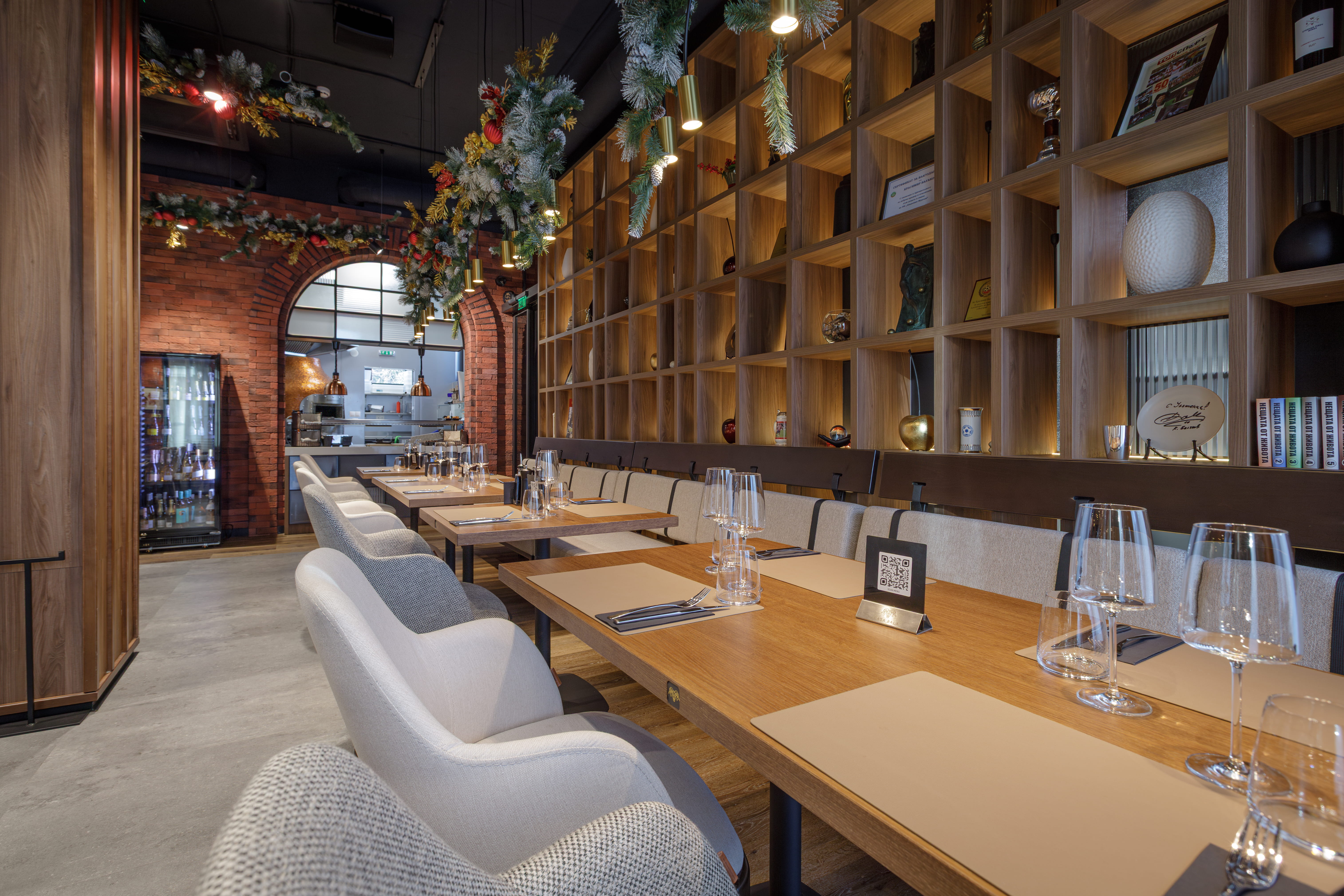 Интериорът на CASA BALA преплита личната история и спортното наследство в елегантна ресторантска среда. Подобно на винарска изба, която разказва за своите отлежали вина, ресторантът разказва лични истории, които отлежават с достойнство. Проектът залага на автентични материали: тухлена зидария, дърво, бетон, метал и орнаментно стъкло, които превръщат всеки ъгъл в интимно убежище.