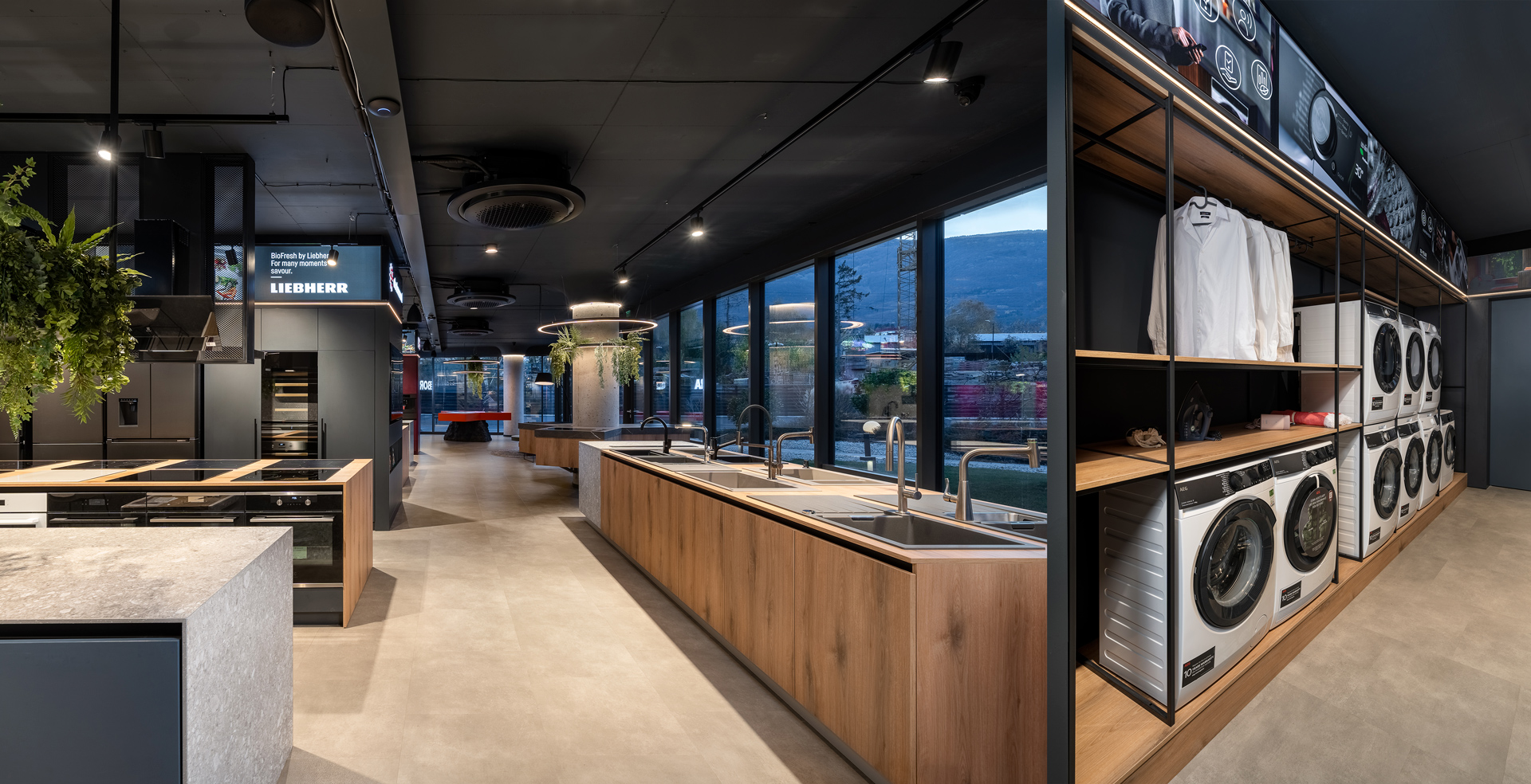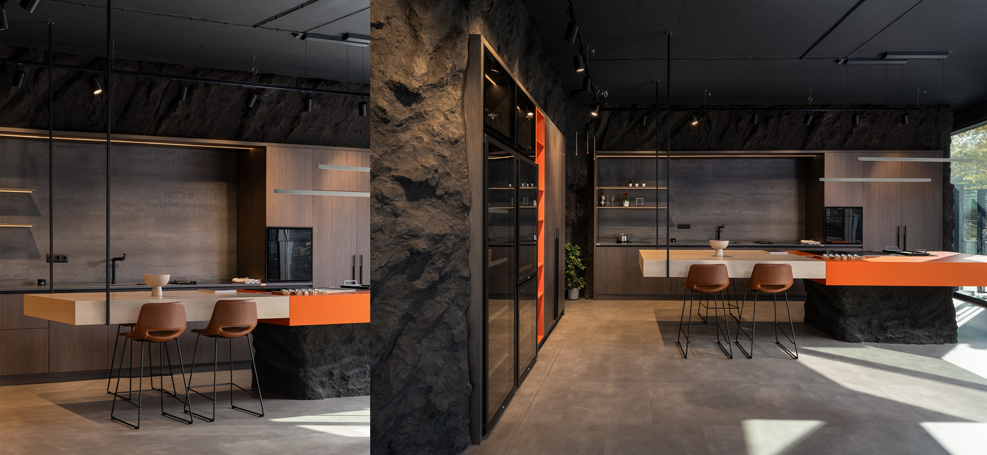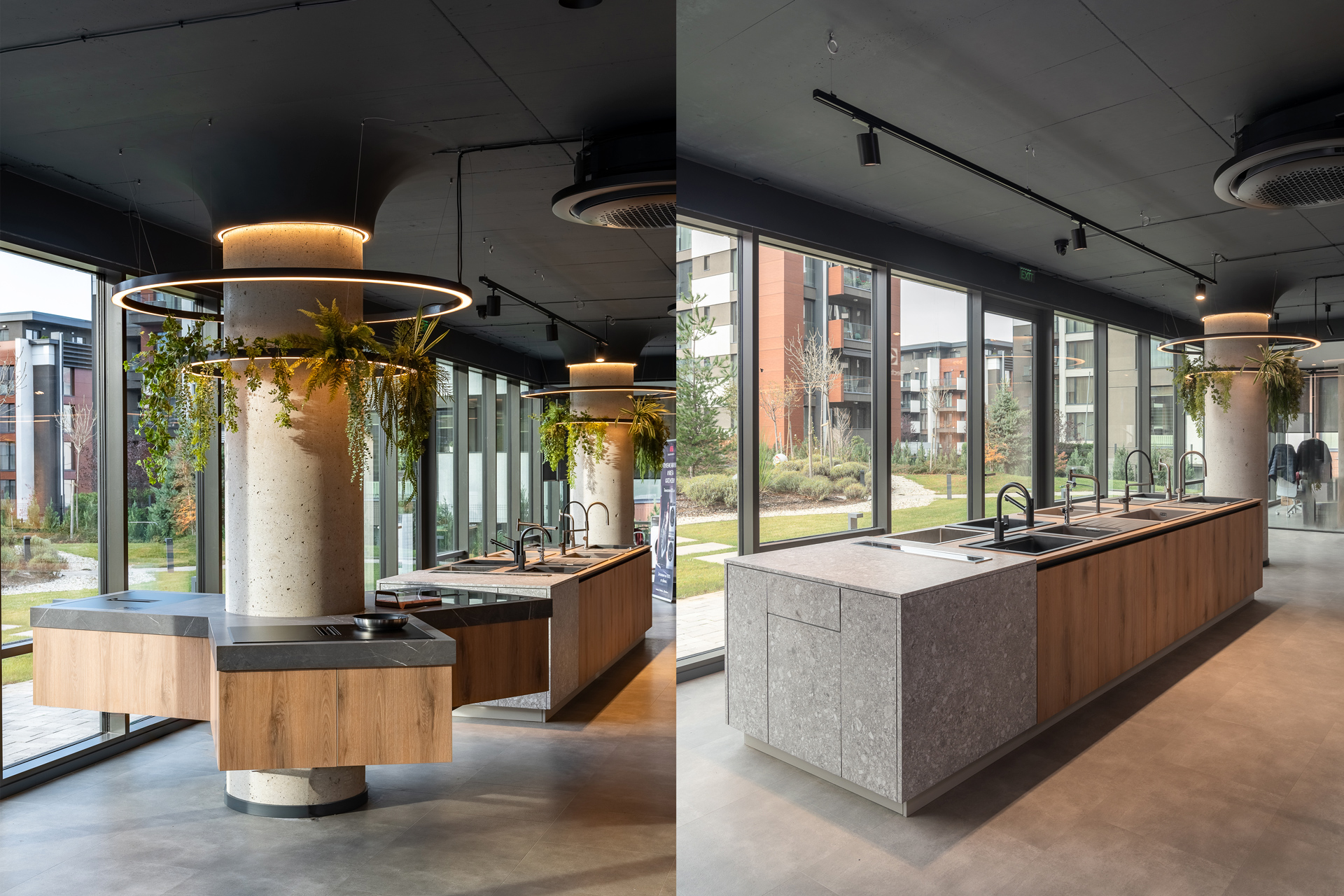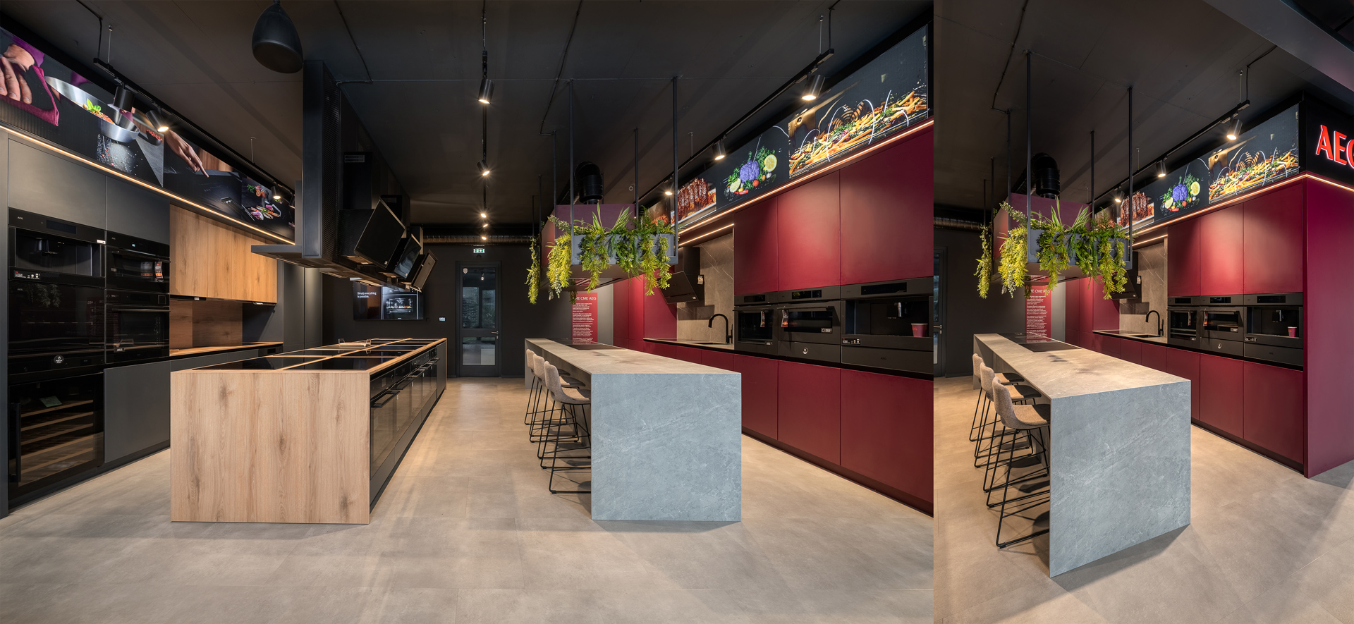 Разпределението позволява демонстрации в реално време. Готварските събития и презентации превръщат шоурума в динамично пространство, което ангажира вниманието и създава пряк диалог между дизайн, продукт и потребител.