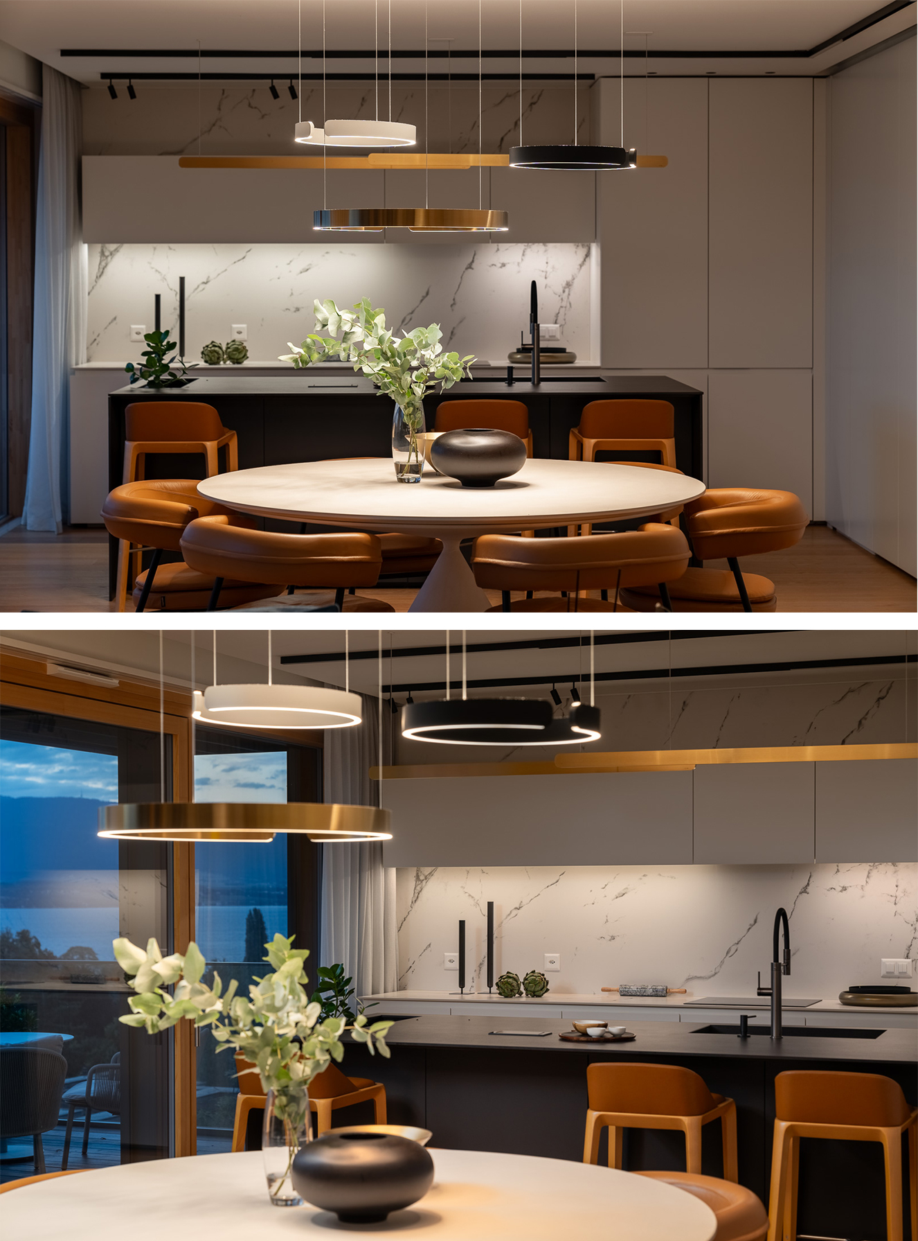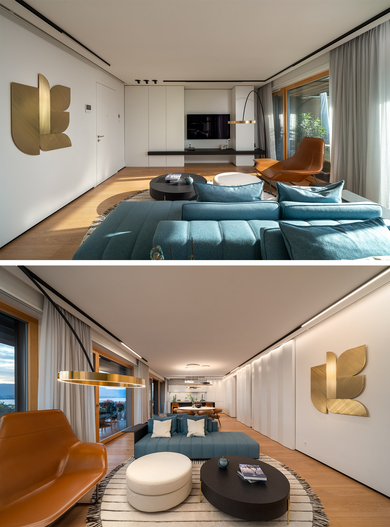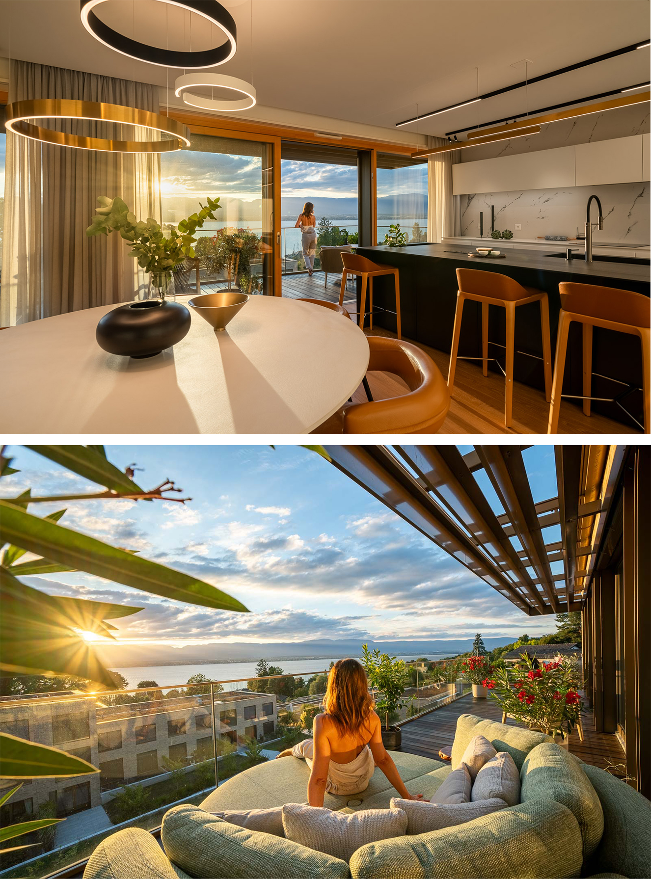 Разположен в Женева, в близост до френската граница, този апартамент създава усещане за защитено вътрешно пространство, което никога не се затваря в себе си. Напротив – той остава в постоянен диалог с хоризонта на Женевското езеро, със светлината, небето и променливата атмосфера на пейзажа, присъстваща във всяко движение на деня.