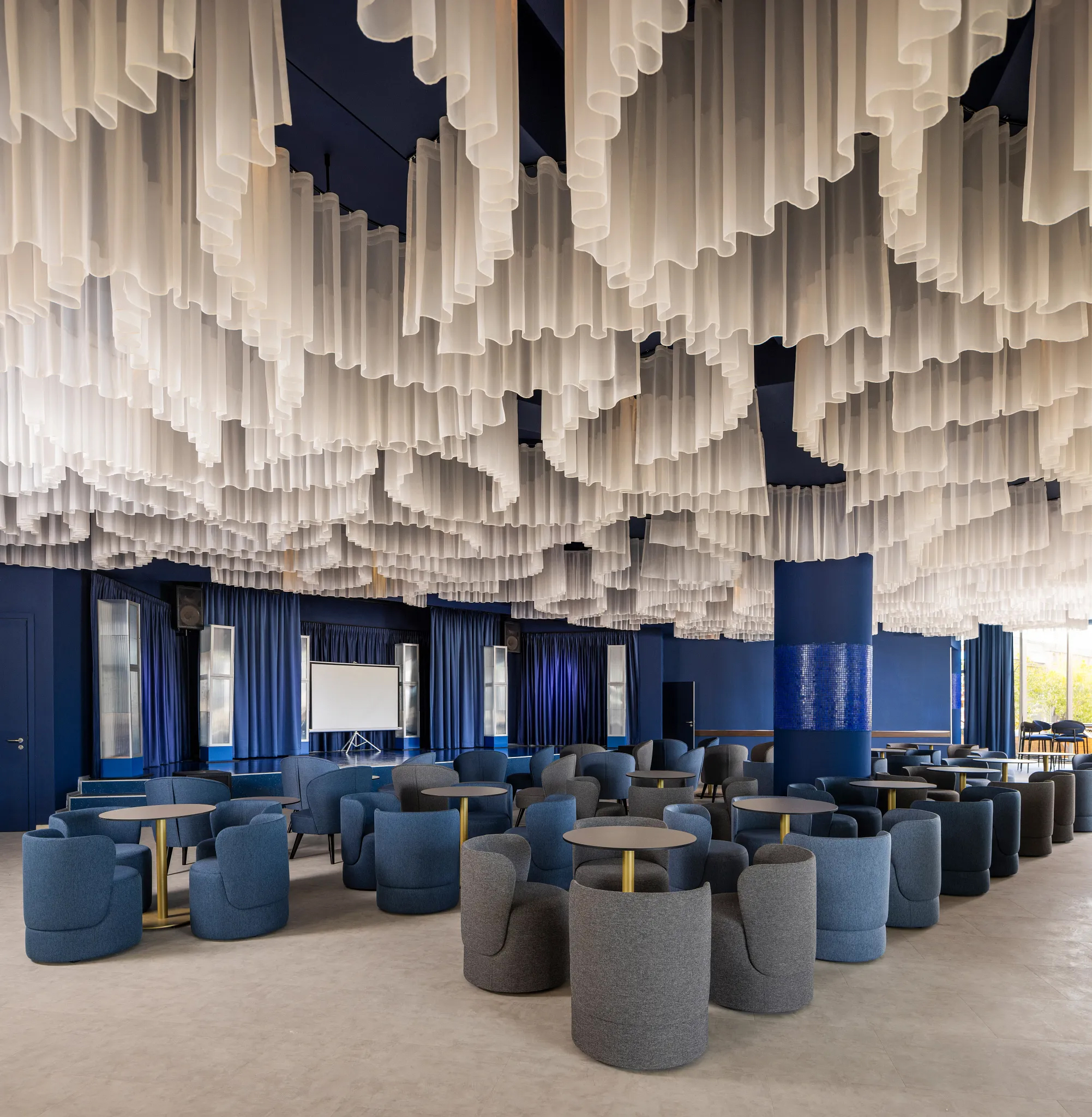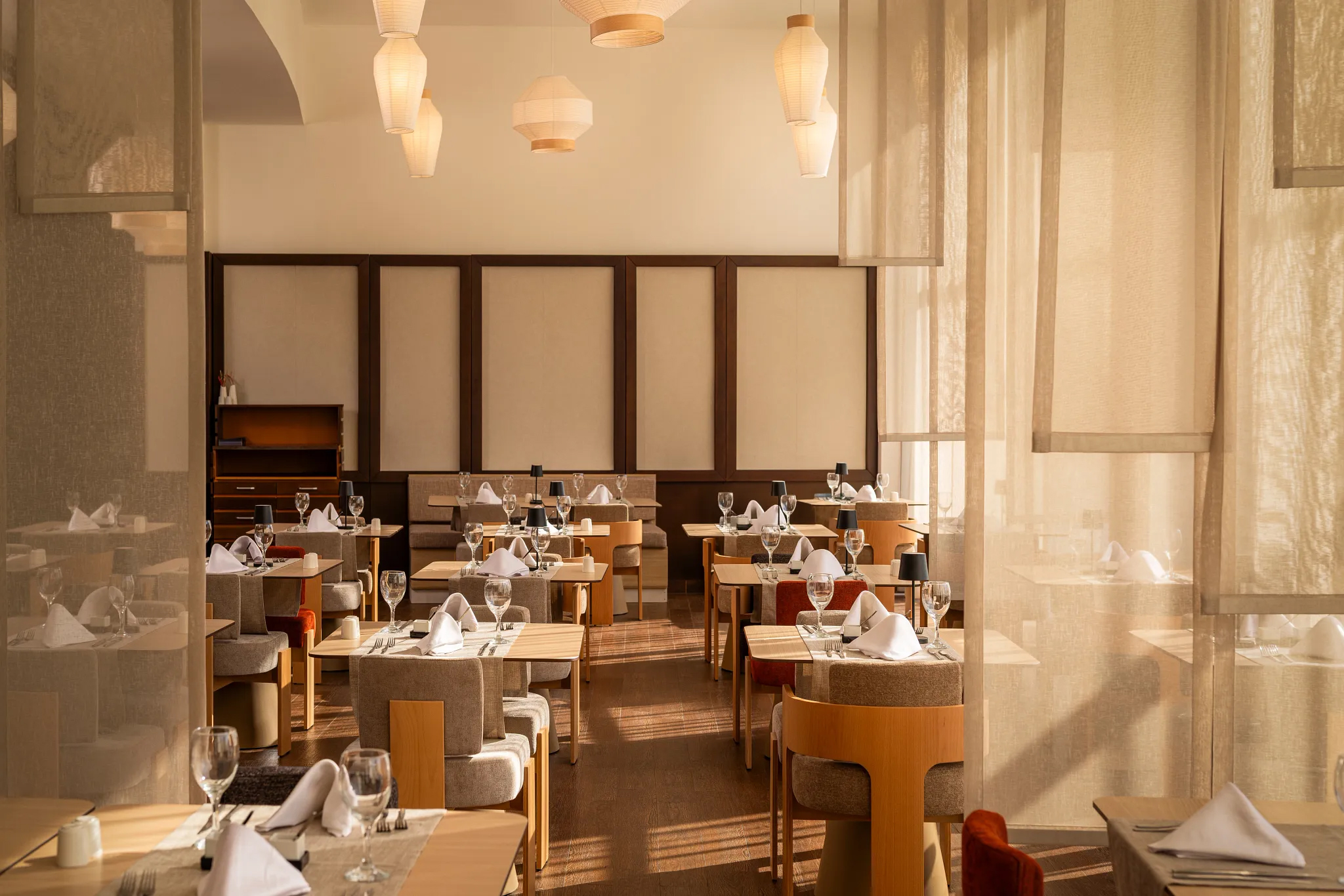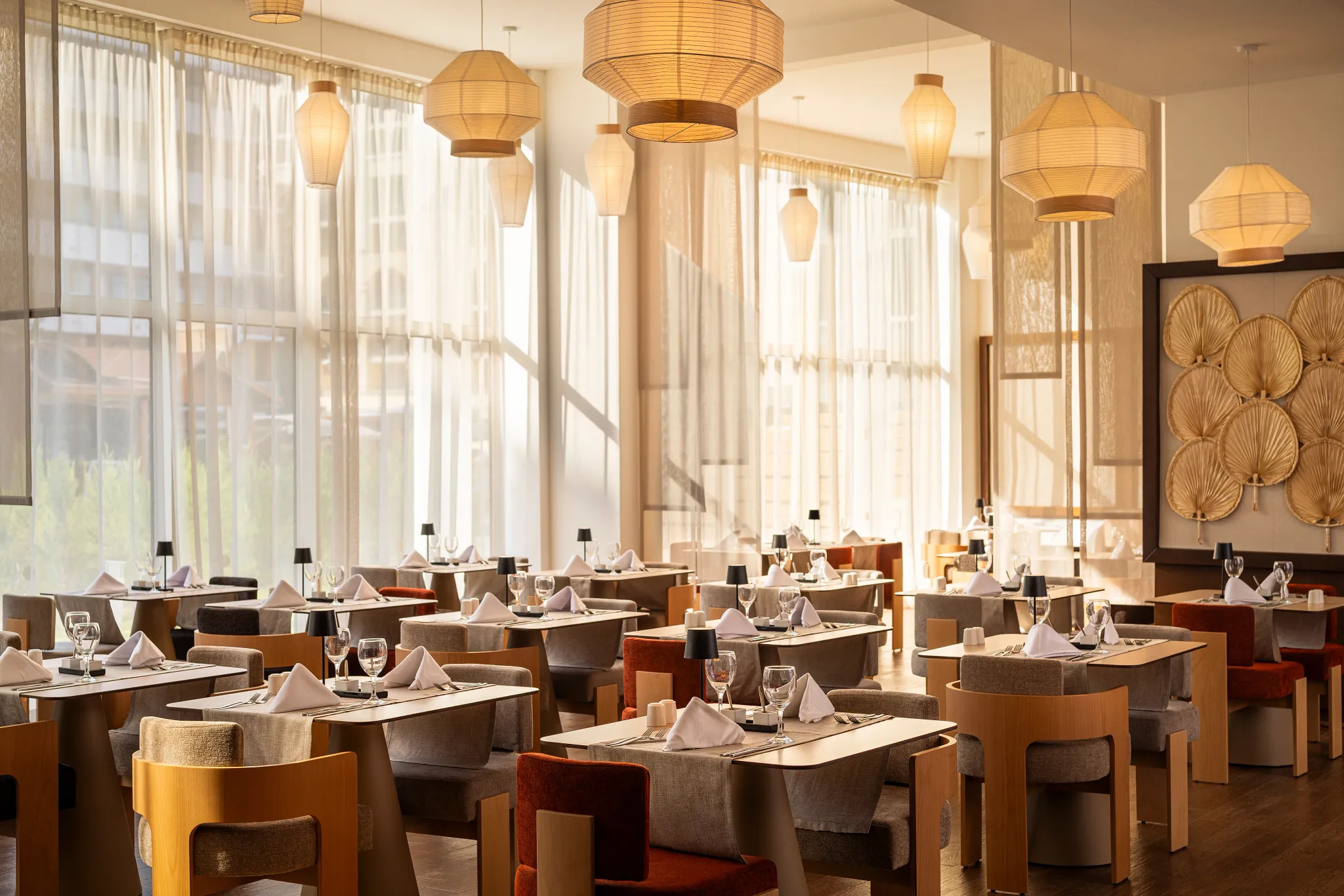 Партерното ниво е организирано като динамична среда с разнообразни функции и ясно обособени зони, всяка от които предлага различно пространствено и емоционално изживяване. Интериорният дизайн е разработен в синхрон с различните аспекти на бранда, като всяка зона притежава собствен характер, отговарящ на нейната функция. Това е водещо при подбора на материали, цветова палитра и обзавеждане. Хотелът разполага с рецепция, основен ресторант, тематичен азиатски ресторант, лоби бар - част от сградта между двата външни ресторанта, дневен ресторант, който сменя визията си за вечерта, нощен бар, спа, фитнес, Мy favorite club - специална зона за отбрани клиенти на бранда.