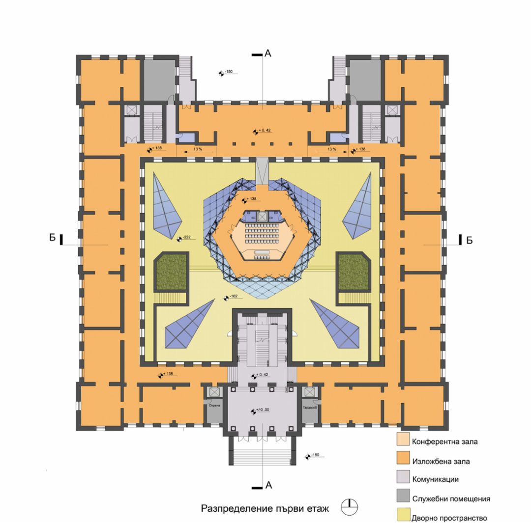 Целта ни е да създадем една леснодостъпна среда ,освен за обикновенният човек така също и за хората с увреждания.Предвиждаме поставянето на лифтове за инвалиди по стълбищните клетки,както и на самият централен вход,също така два асансъора за посетители от двете страни на главното фоайе.