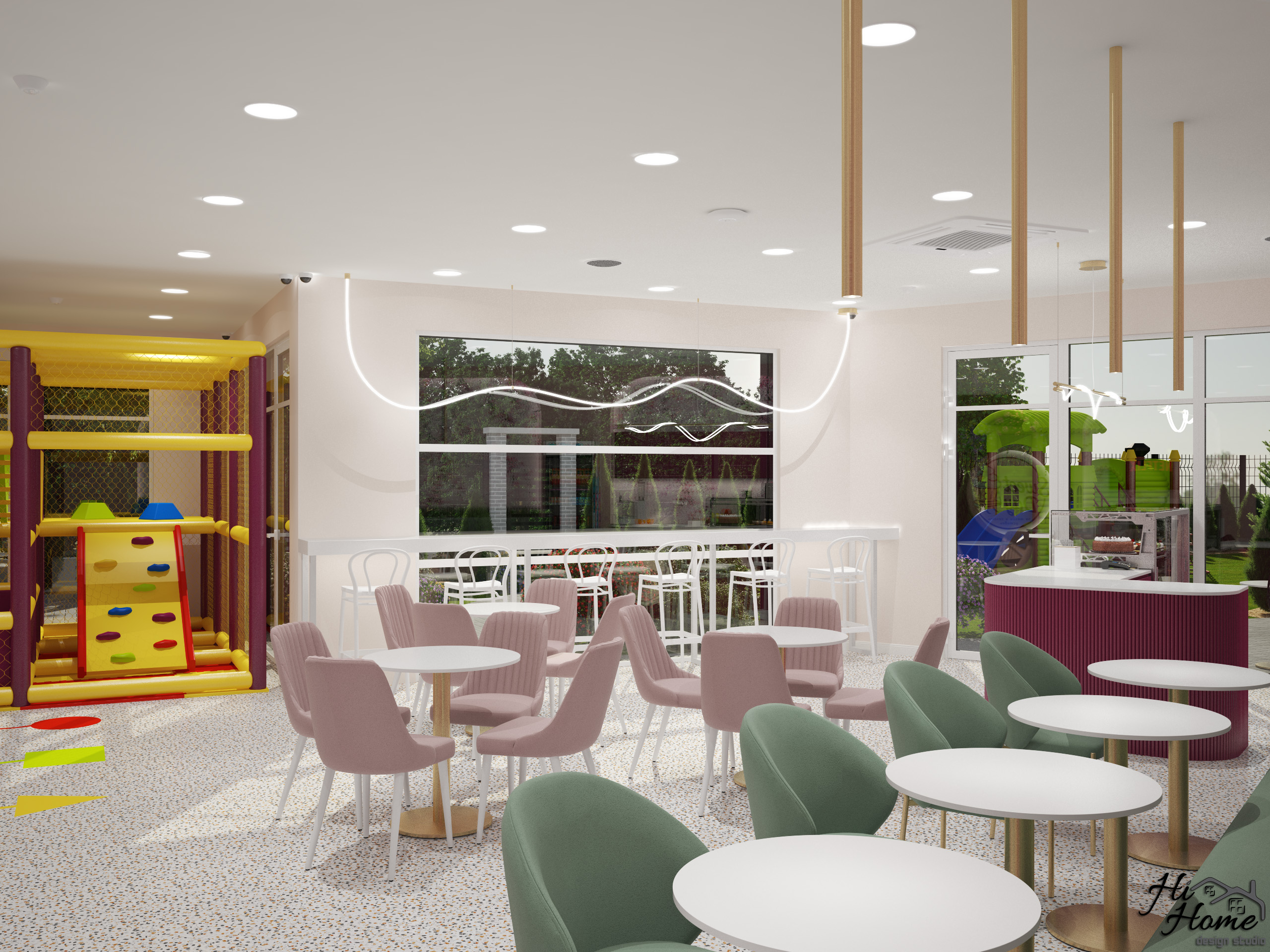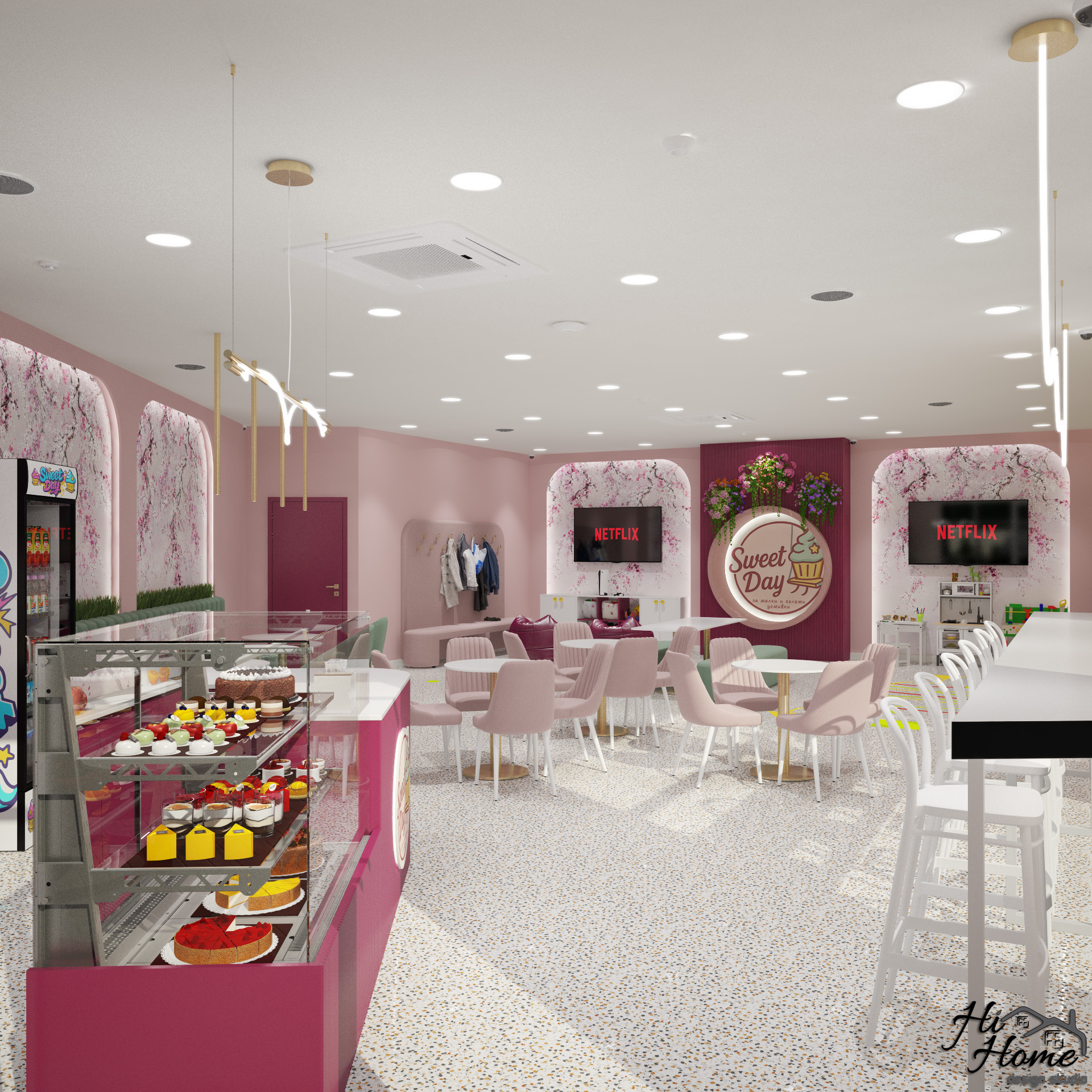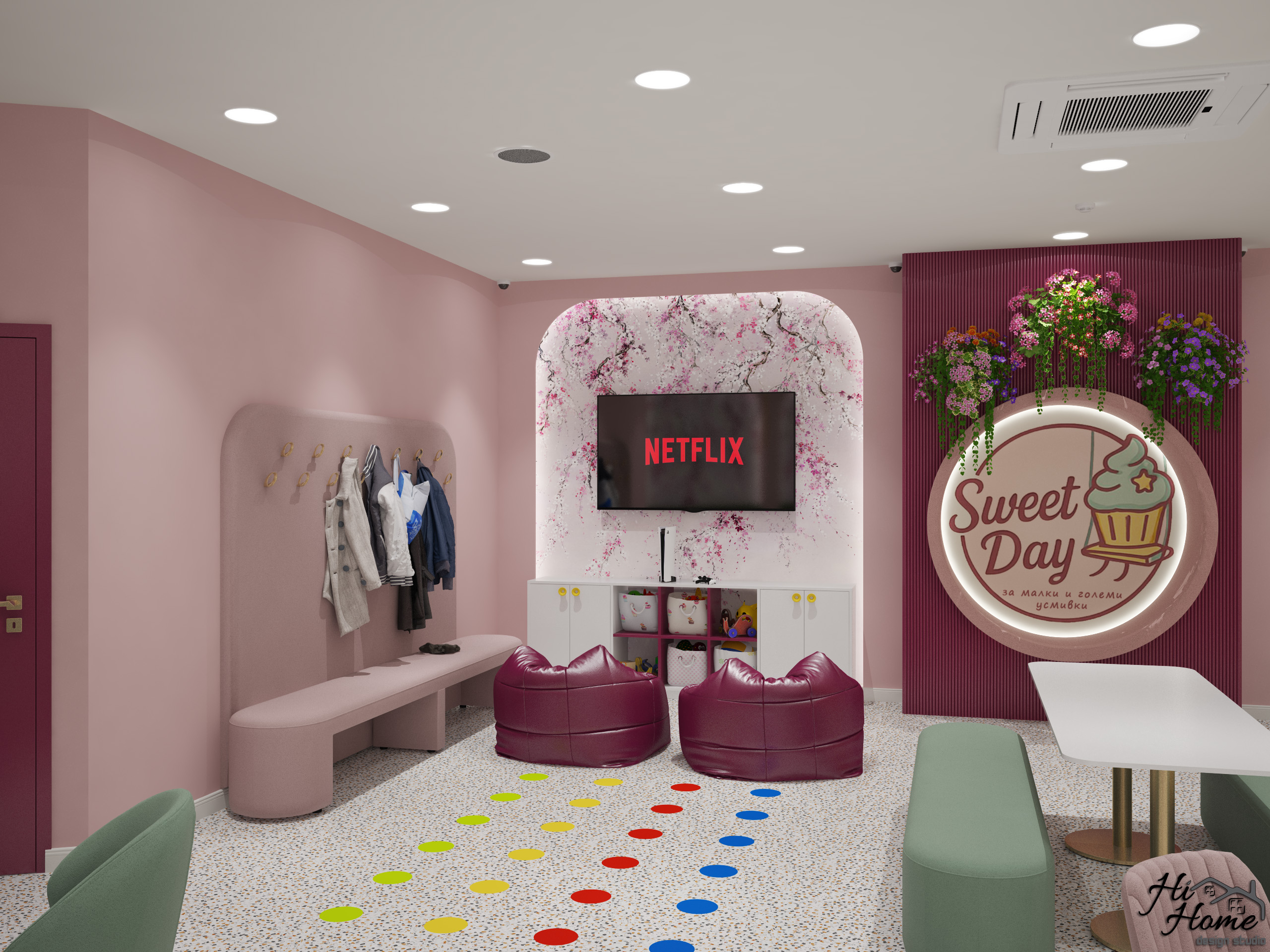 Представяме ви интериорен проект на сладкарница, която се намира в с. Константиново, на 20 км от гр. Варна. Тя има уникален детски кът, създадена е с голямо желание, любов и внимание към детайла. Мястото е предвидено и за празнуване на детски рождени дни, като за целта сме отделили маса в детската зона за малките купонджии, както и достатъчно място за възрастните, които да се насладят на празненството без компромис в изживяването. Надяваме се да ви хареса!