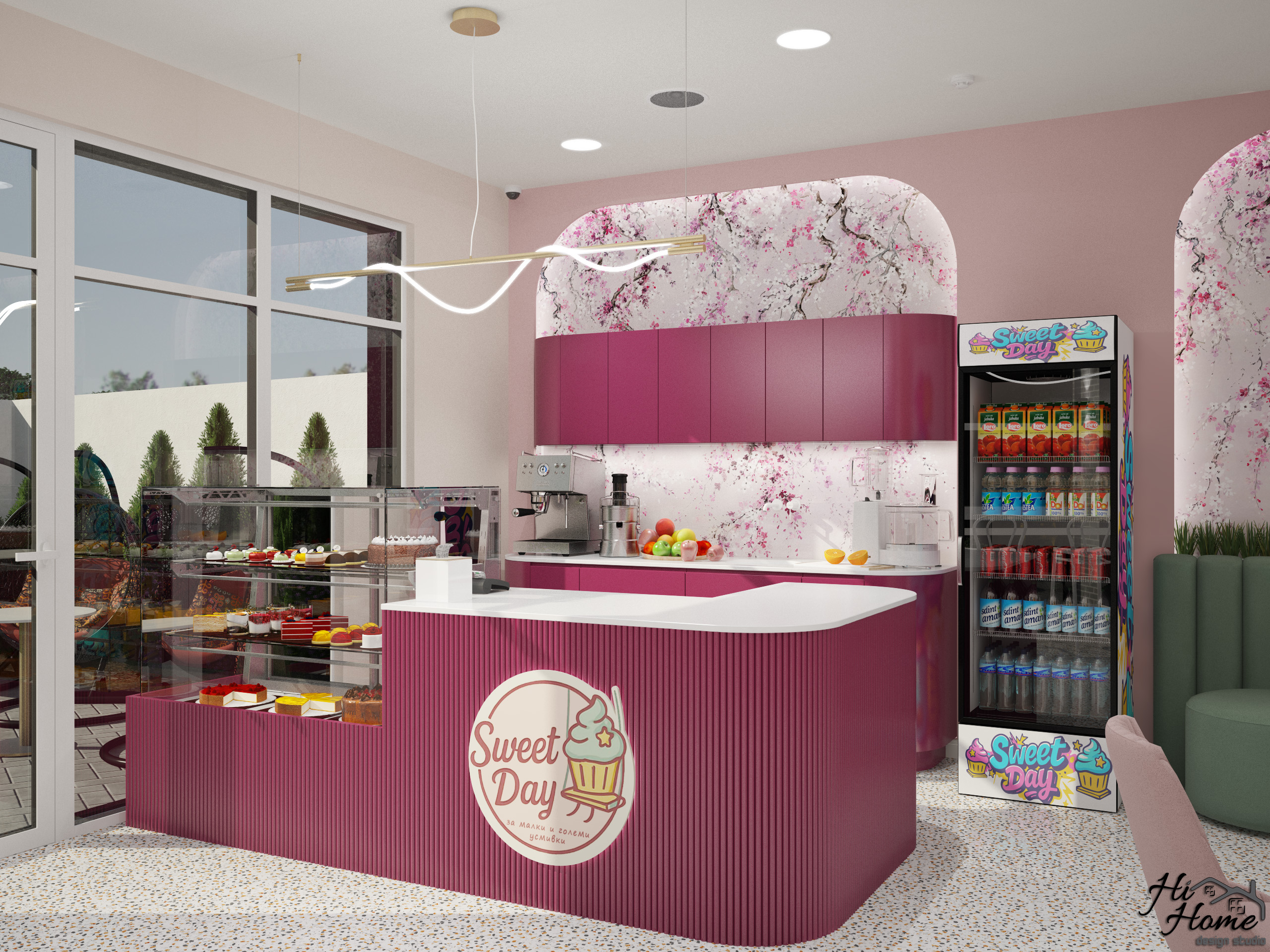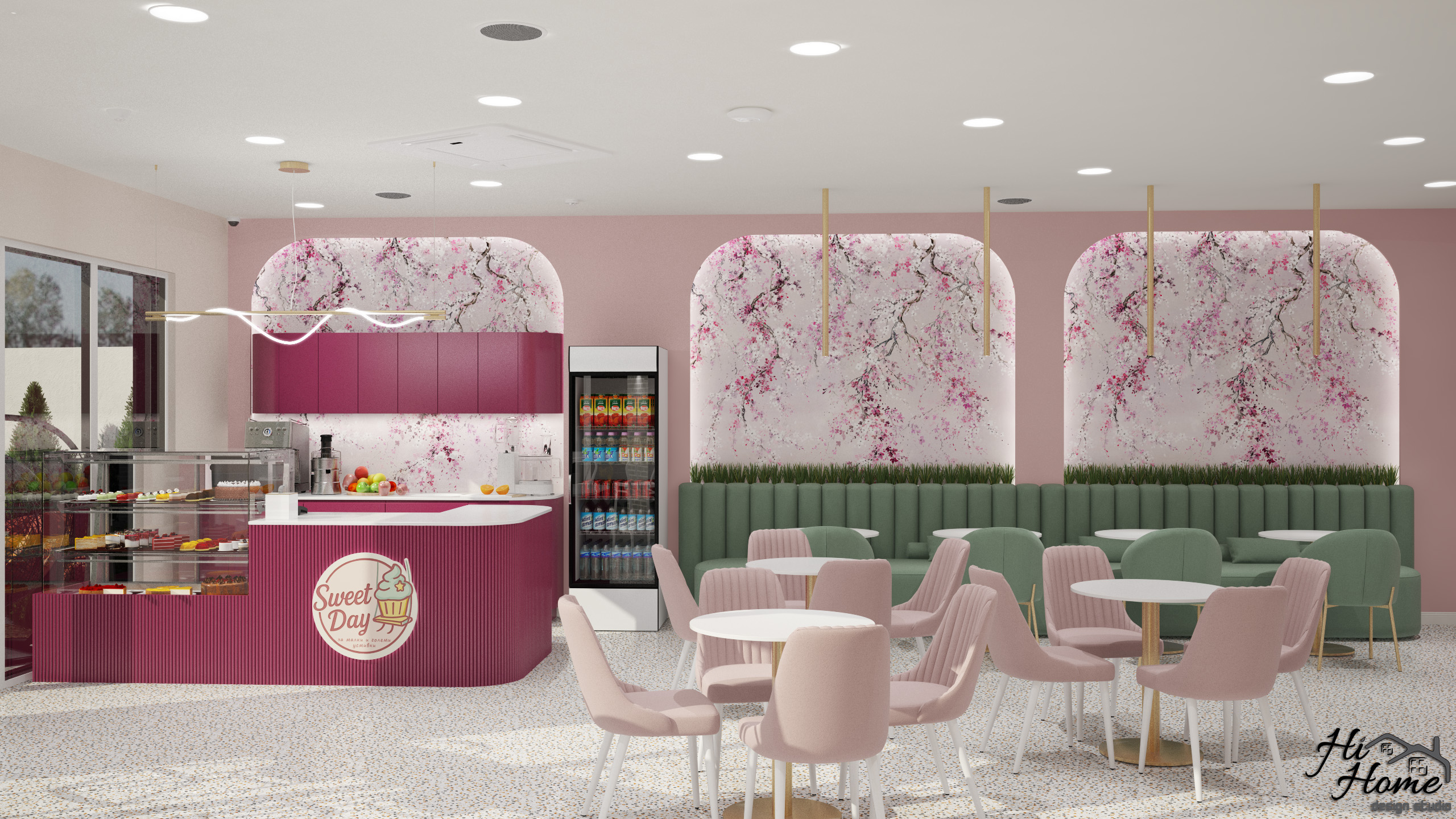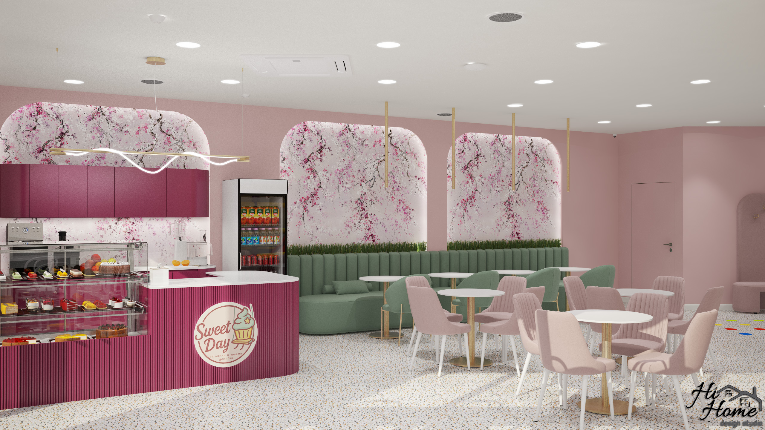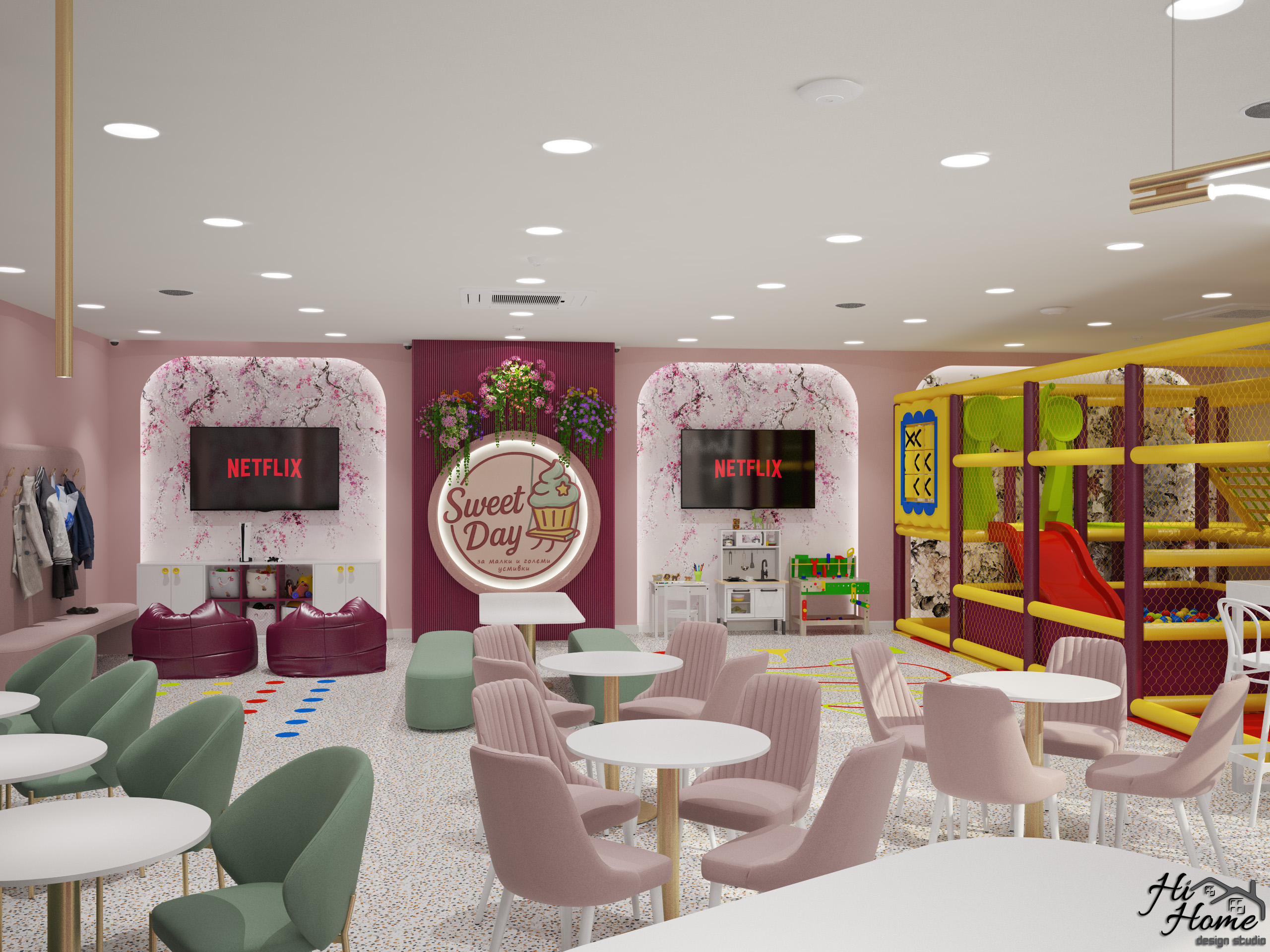 Представяме ви интериорен проект на сладкарница, която се намира в с. Константиново, на 20 км от гр. Варна. Тя има уникален детски кът, създадена е с голямо желание, любов и внимание към детайла. Мястото е предвидено и за празнуване на детски рождени дни, като за целта сме отделили маса в детската зона за малките купонджии, както и достатъчно място за възрастните, които да се насладят на празненството без компромис в изживяването. Надяваме се да ви хареса!