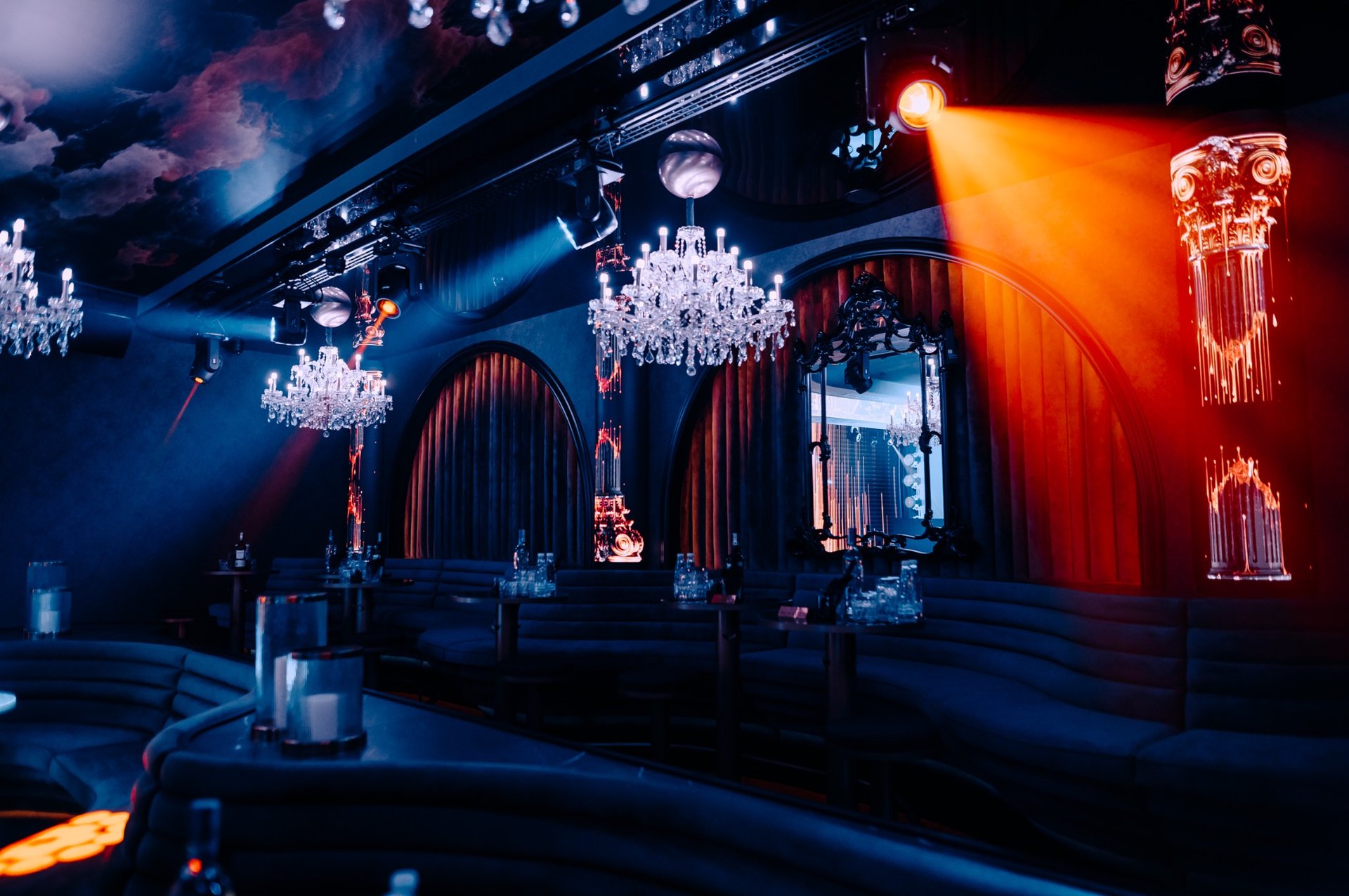 Lighting is developed as a multi-layered system fully integrated with the stage, media content, and musical scenarios. Architectural and professional stage lighting, together with RGB-capable crystal chandeliers, enable both dynamic light shows and intimate ambient settings.