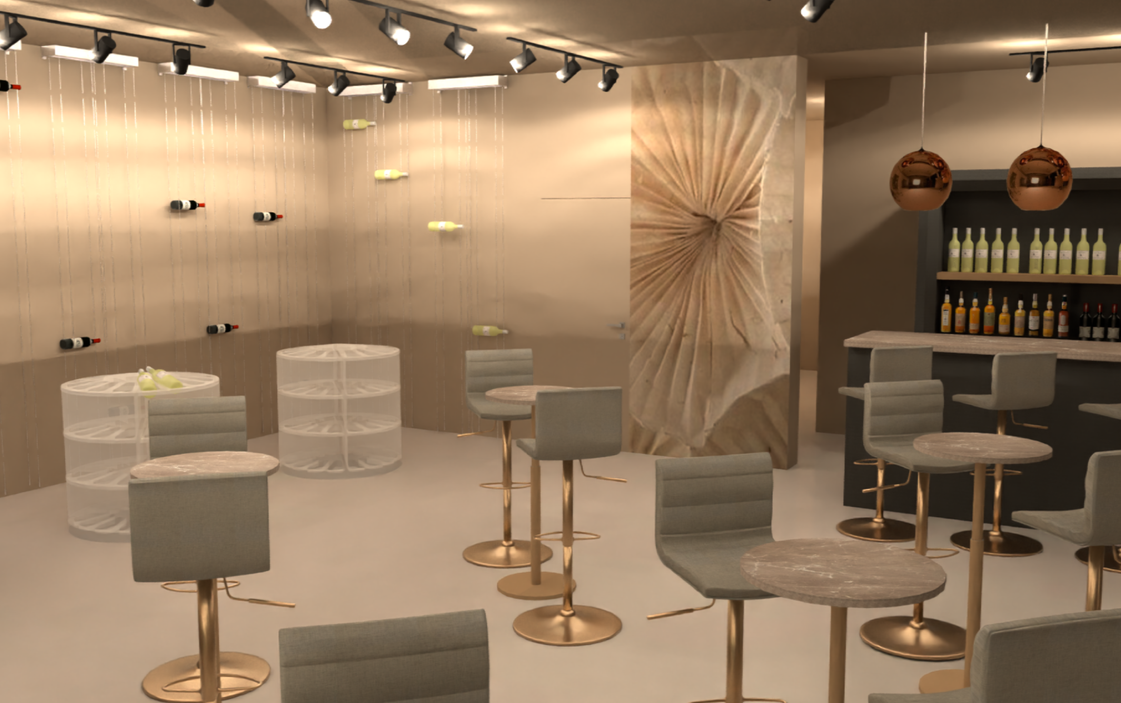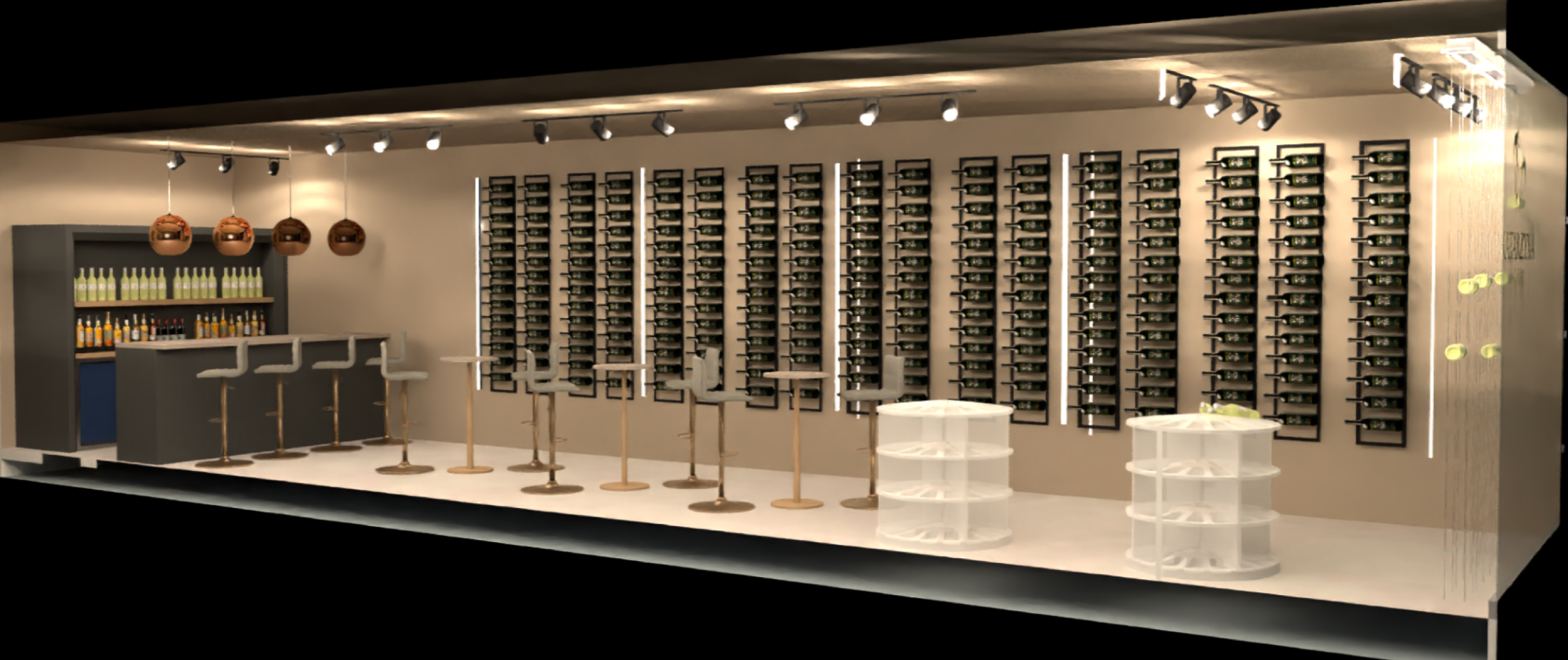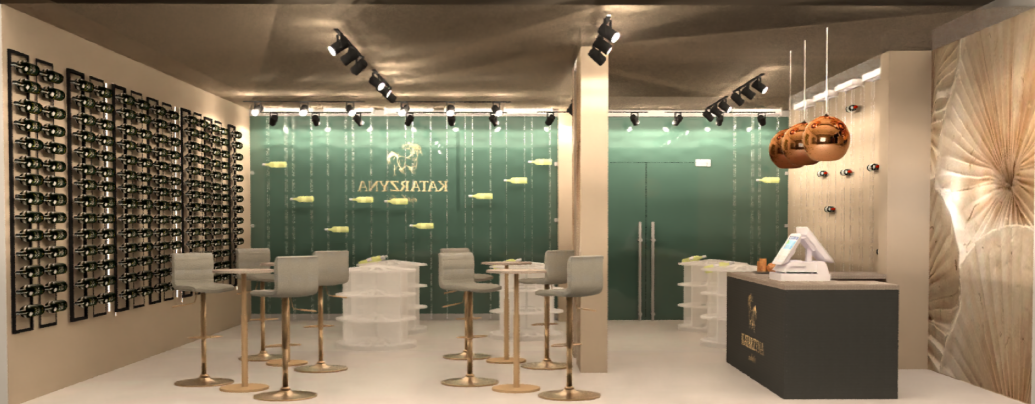 Проектиране на магазин за вино, който да демонстрира безпорните качества на вината на изба Катаржина, да създаде трайна връзка с бранда и комфорт. Помещението трябва да позволява и организиране на събития. Помещение с площ 119 кв. м. и височина 3.2 м. на партерен етаж в жилищна сграда със североизточно изложение.