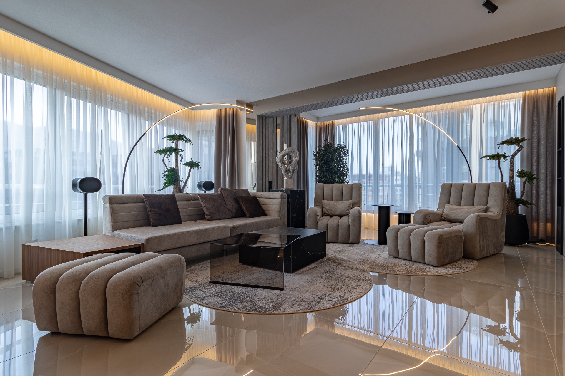 The project aims not only to create visual impact, but to shape an environment that supports the daily rhythm of its inhabitants — a space for calm, connection, and personal moments. This interior does not follow trends; instead, it interprets contemporary living through a sense of restraint, quality, and a deep understanding of human comfort.