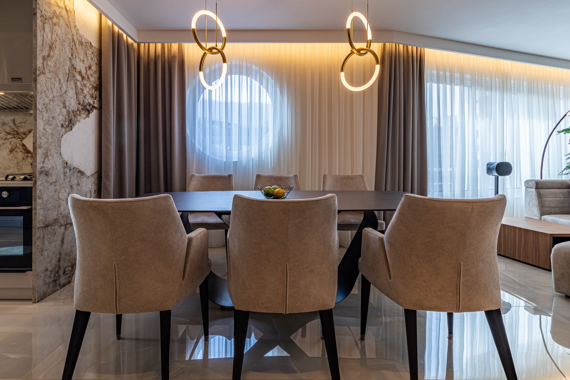 Проектът цели не просто визуално въздействие, а създаване на среда, която подкрепя ежедневния ритъм на обитателите — място за спокойствие, споделяне и лични моменти. Това е интериор, който не следва тенденции, а интерпретира съвременността чрез усещане за мярка, качество и дълбоко разбиране за човешкия комфорт.In this family apartment, the concept of contemporary luxury is interpreted as a state of balance — between functionality and emotion, between clean architectural lines and a sense of warmth and comfort. The space is designed as a cohesive living environment, where every decision follows a clear logic and contributes to the overall harmony of the interior.