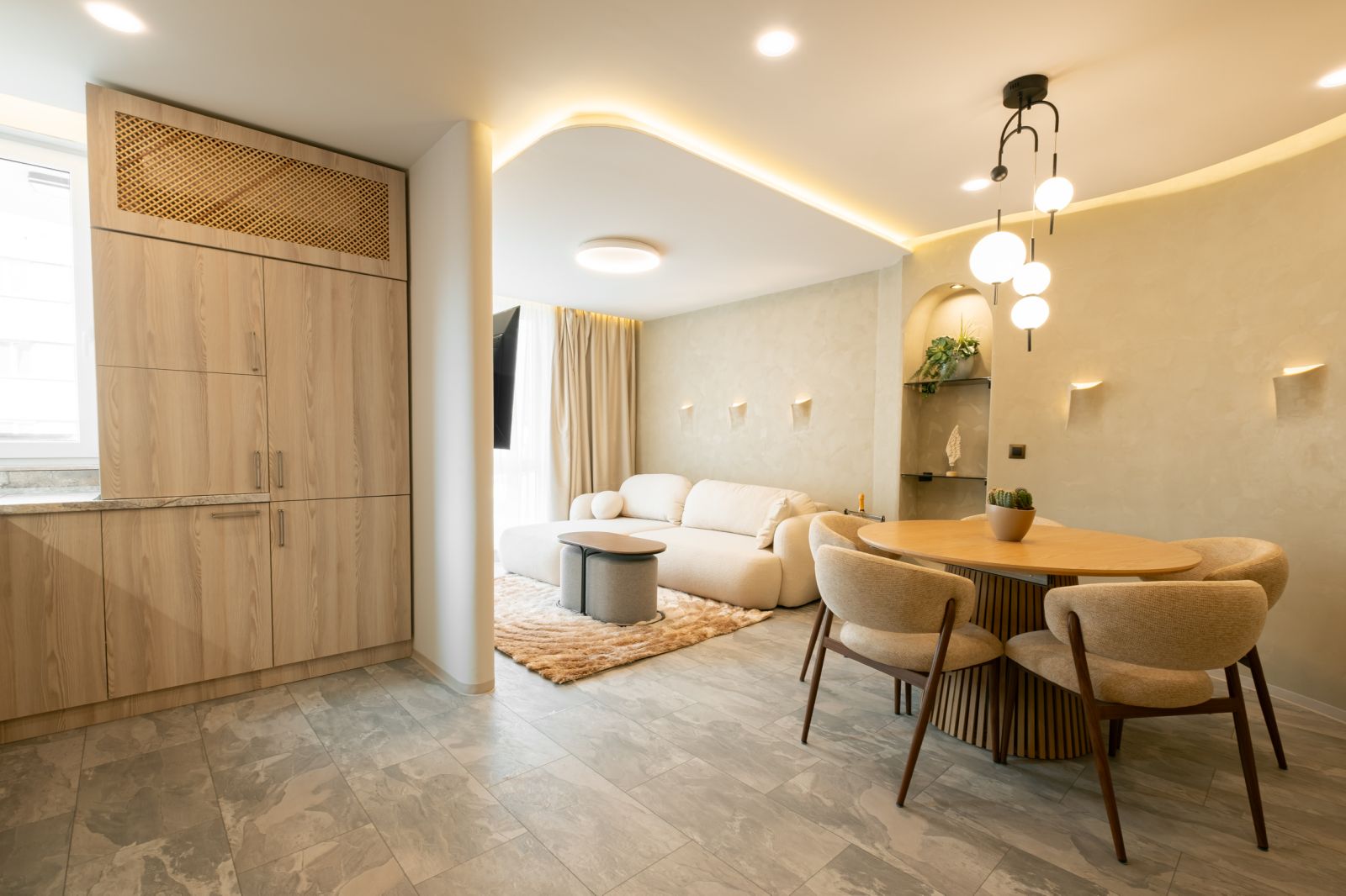 The “Modern Organic” project is conceived as a contemporary interpretation of organic design—an aesthetic that harmoniously blends the raw, tactile beauty of natural materials with clean, modern architectural language. The apartment embodies this philosophy by offering a calm, grounded retreat from the pace of urban life. Soft lines, rounded geometries, and a muted, neutral palette work together to create an atmosphere of quiet sophistication, warmth, and balance.