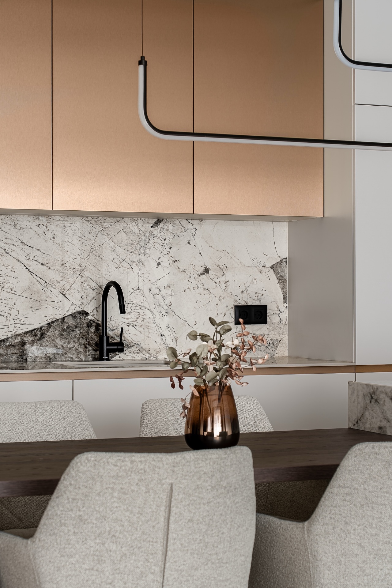 The interior is guided by clean lines and a peaceful ambience. Every design solution supports the owner’s lifestyle, resulting in a stylish, practical and confidently personal home — created for the contemporary gentleman.