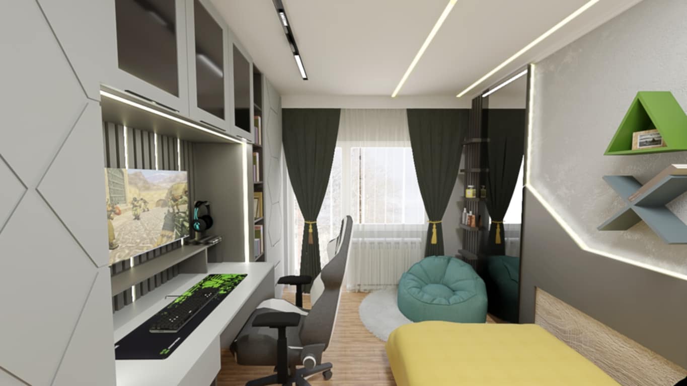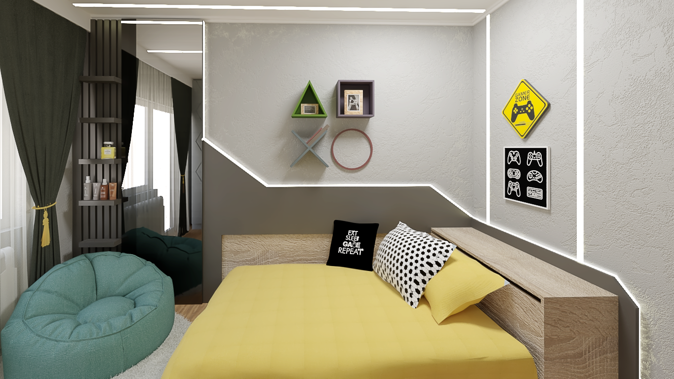 Къща с 3 спални, всяка отразява характера на своята обитателка - романтика, класика и геймърска стая. От тях се влиза през широко и модерно антре.