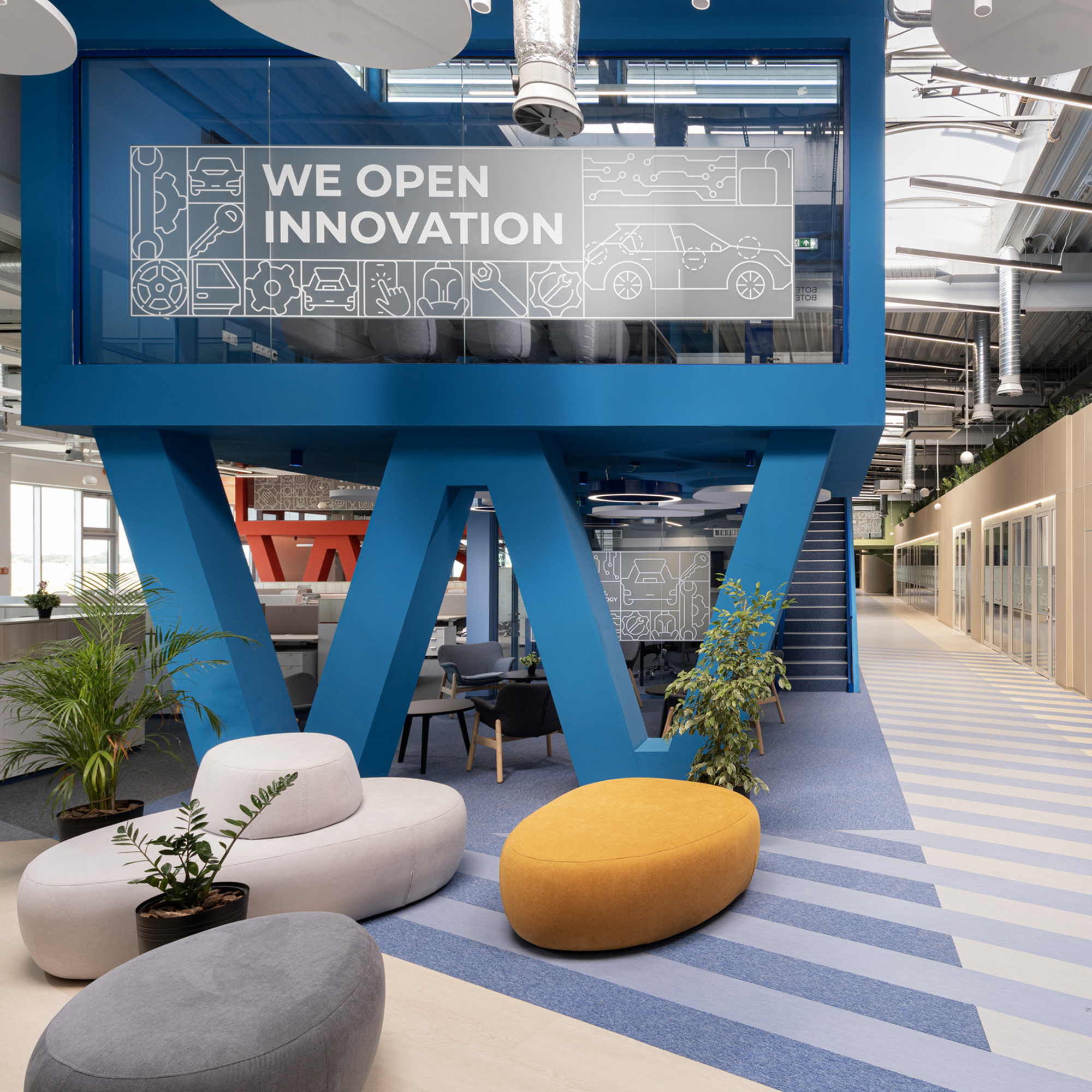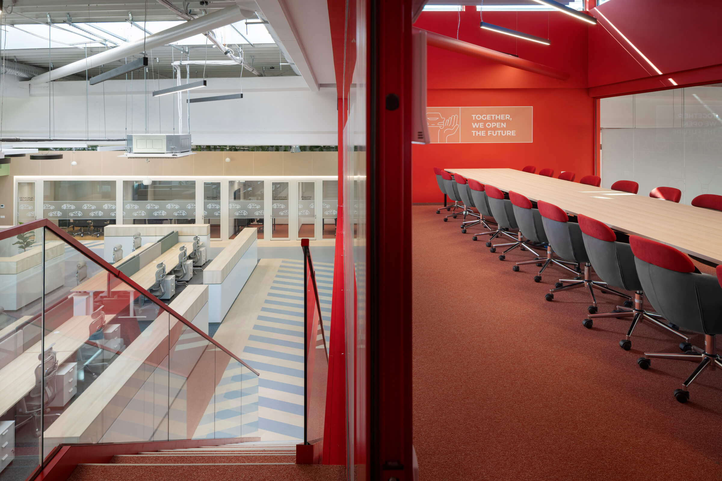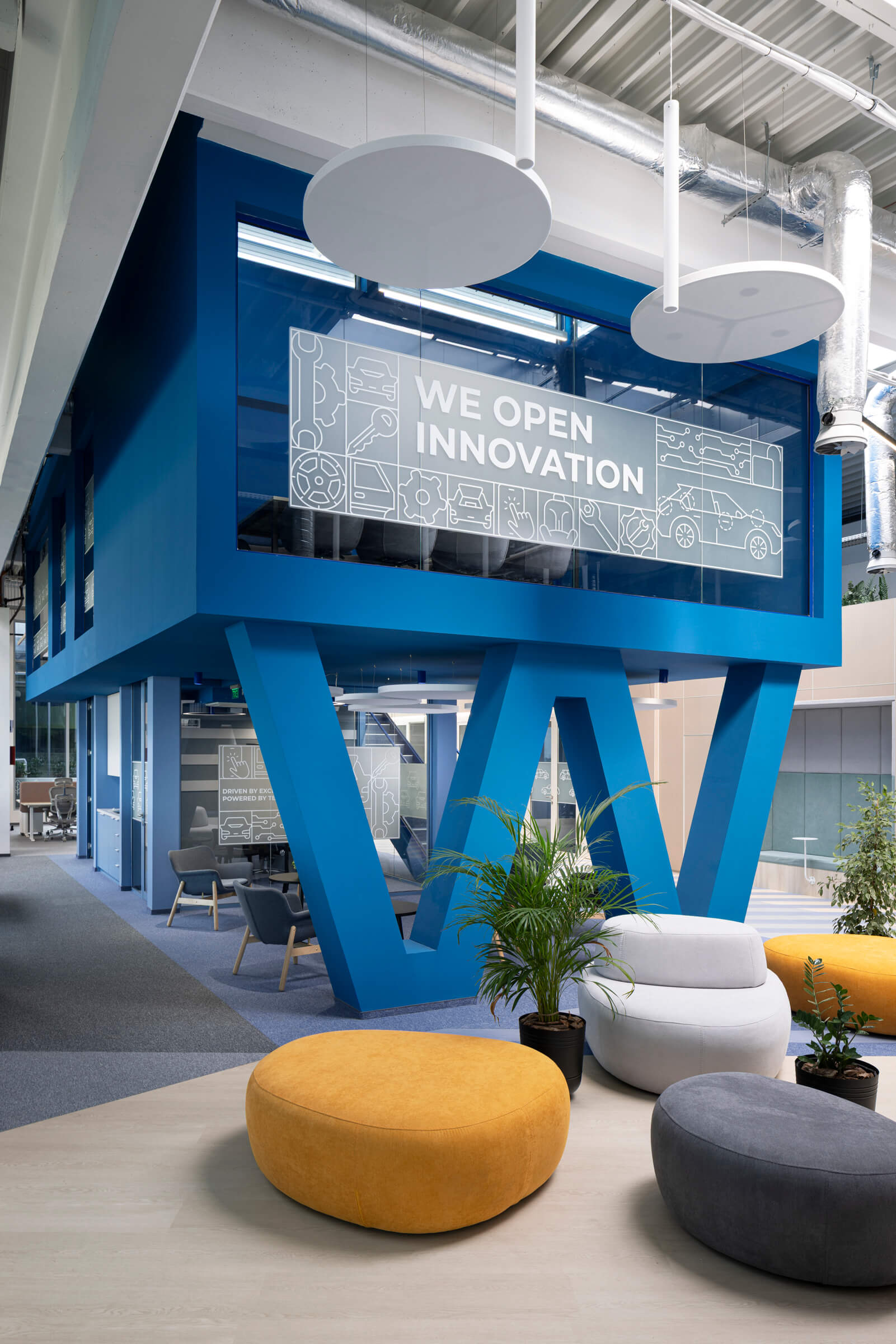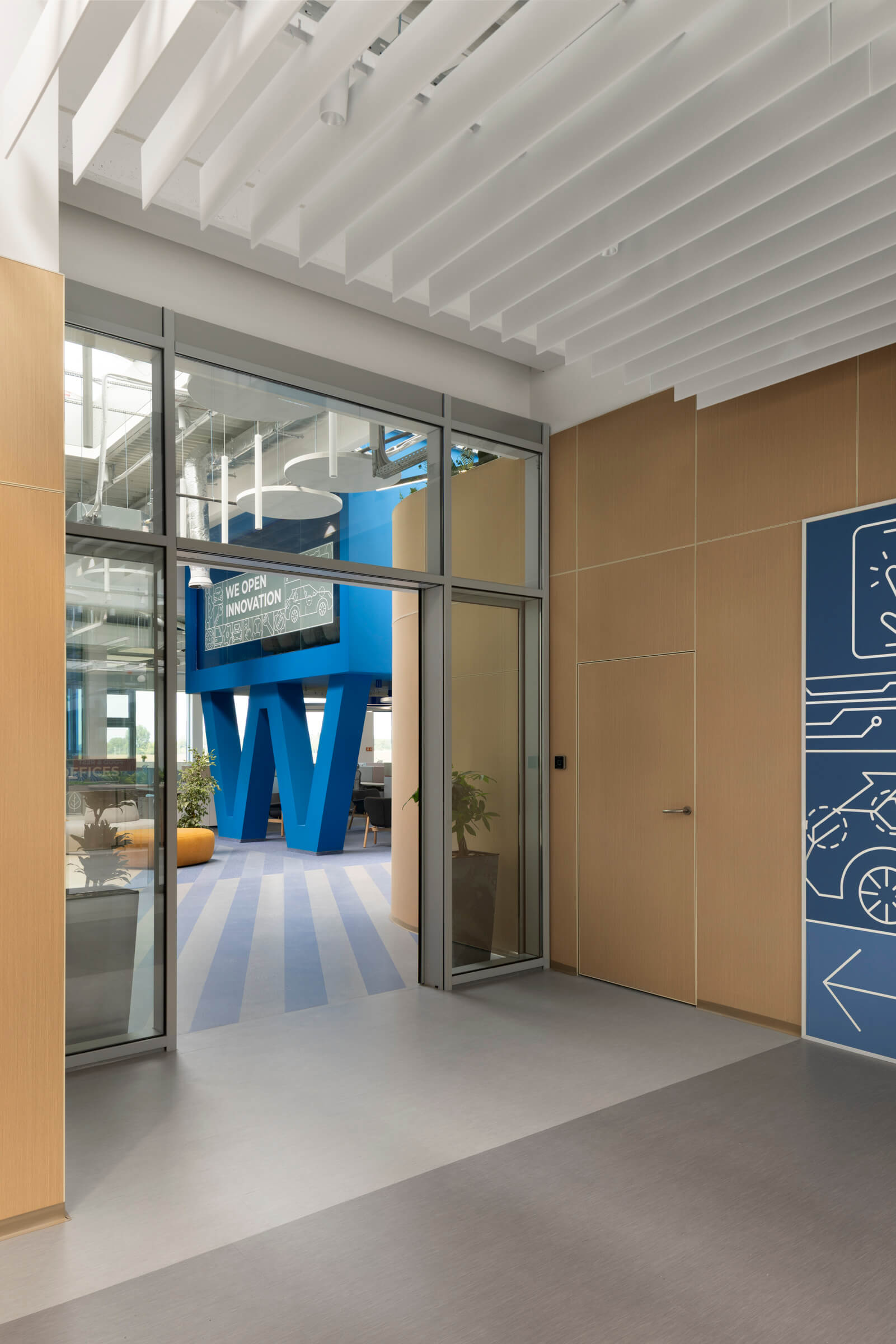 Each volume is designed to reflect one of WITTE’s core values — technology, people, and environment — through its form, color, and spatial experience. By integrating these brand valuess, the office is transformed from a purely functional workspace into an environment that inspires creativity, engagement, and a sense of belonging. Inside the office, three inner gardens open to the sky bring natural light deep into the space and introduce greenery, enhancing wellbeing and creating a strong connection to nature.