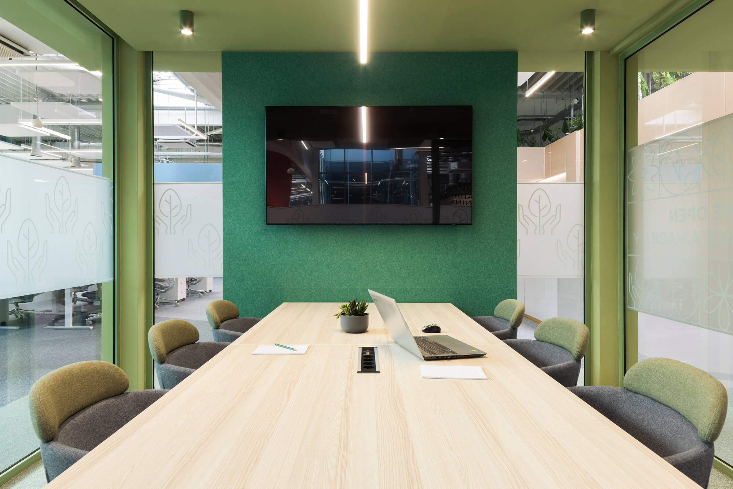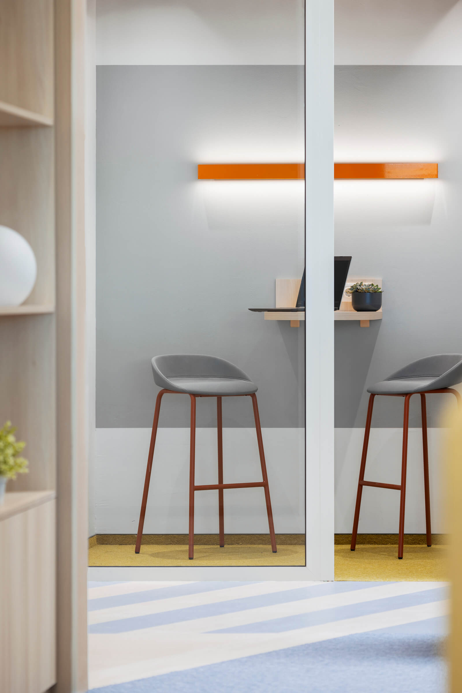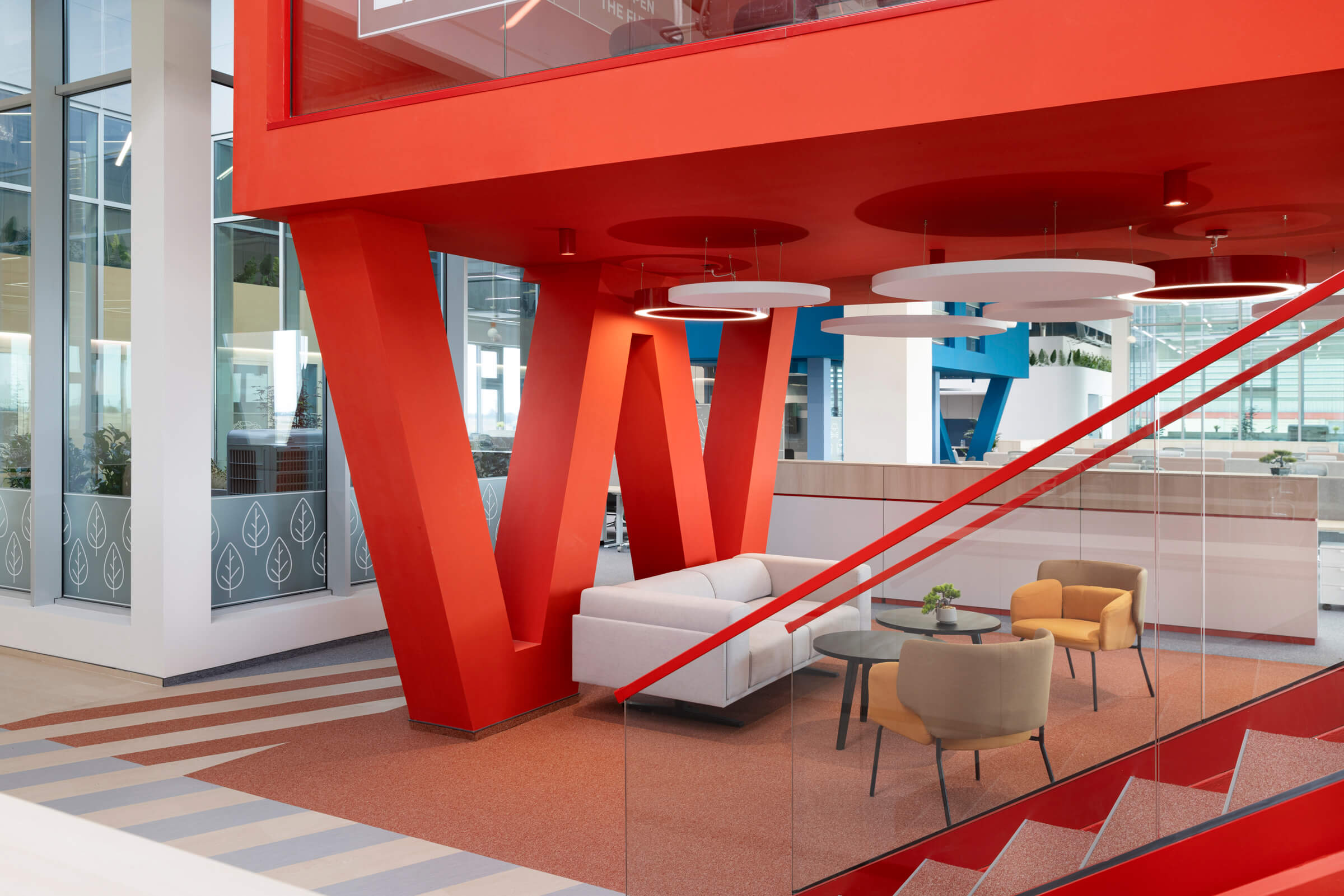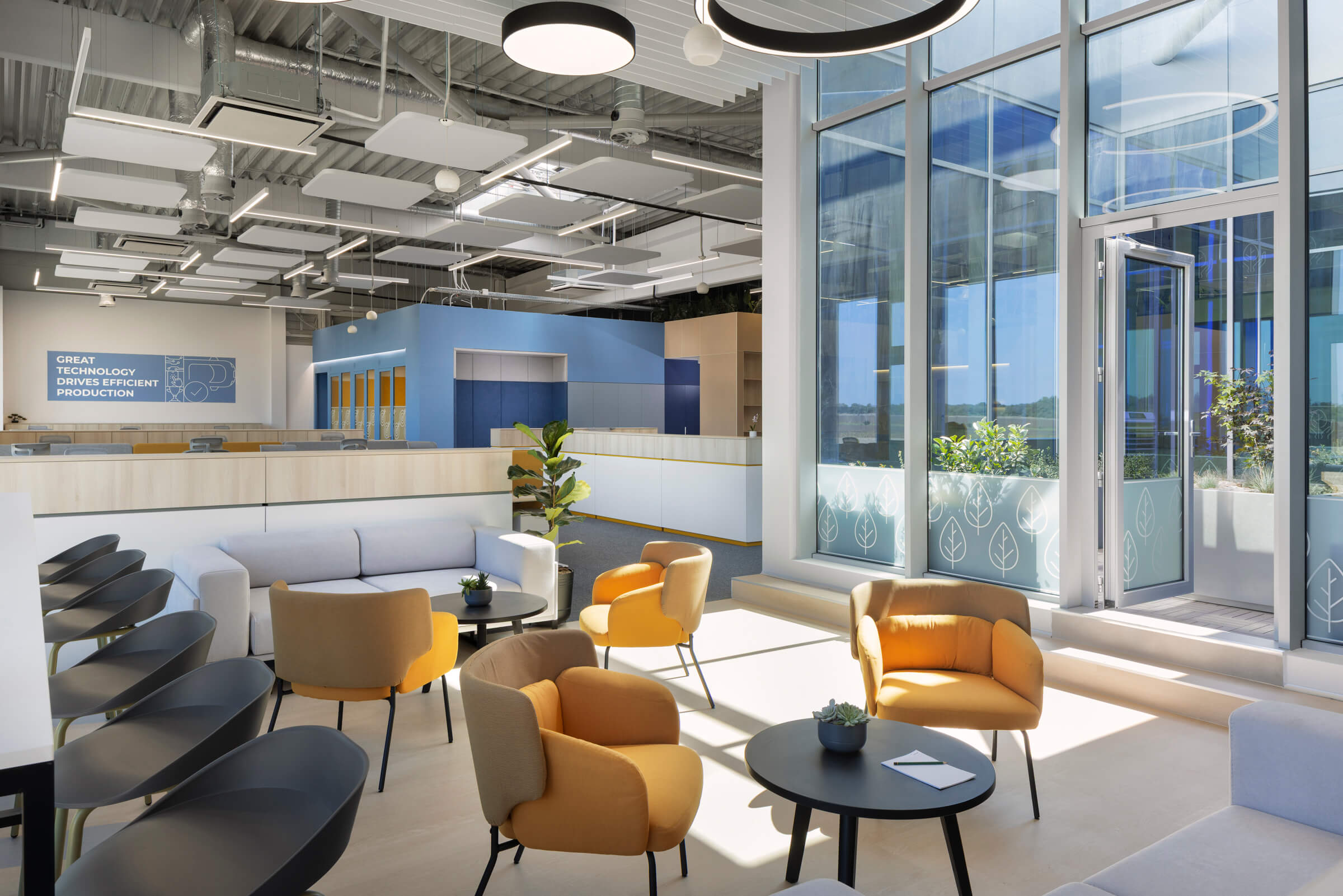 Each volume is designed to reflect one of WITTE’s core values — technology, people, and environment — through its form, color, and spatial experience. By integrating these brand valuess, the office is transformed from a purely functional workspace into an environment that inspires creativity, engagement, and a sense of belonging. Inside the office, three inner gardens open to the sky bring natural light deep into the space and introduce greenery, enhancing wellbeing and creating a strong connection to nature.
