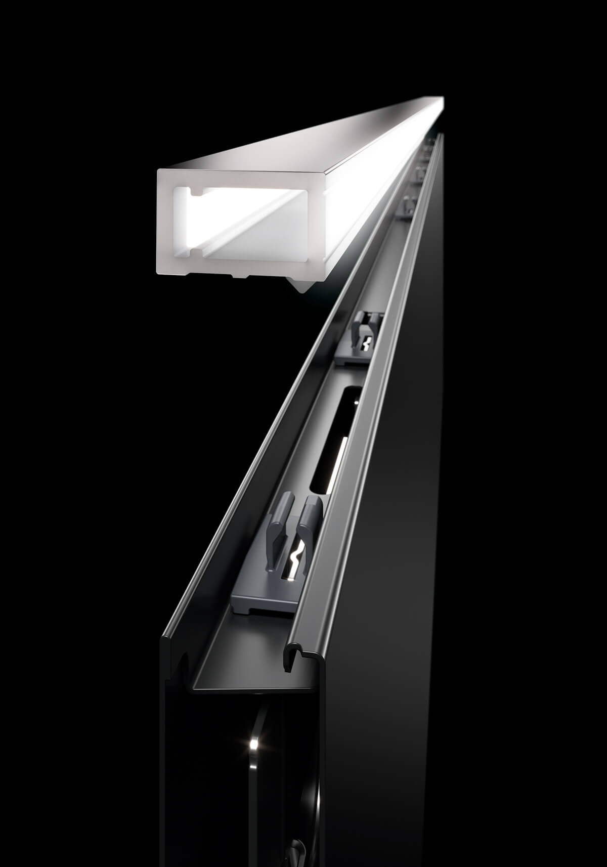 Получавате дизайн, функцоналност и удобство в едно: вътрешно осветление на мебелите посредством светещи страници без необходимост от електрическо захранване. Плътната стоманена царга също има възможност за осветление посредством клипсващи се дизайнерски профили с интегрирано хомогенно LED осветление, което се включва при отваряне на чекмеджето.