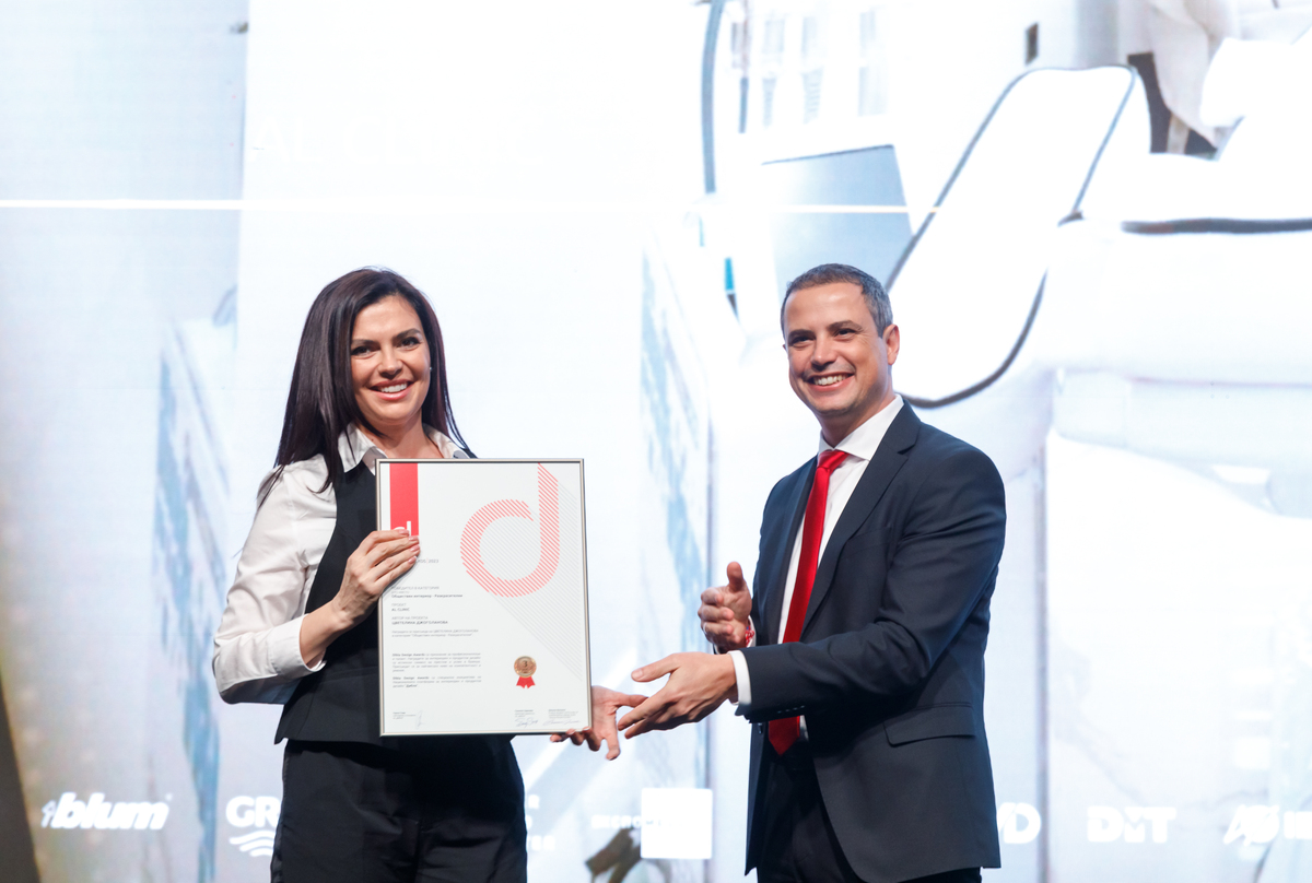 Наградите в категорията връчи г-н Ивайло Иванов, управител на Интер Експо Център. ИЕЦ е една от най-желаните локации за провеждане на събития, семинари, изложения и е символ на модерните и успешни бизнес практики. Вече 3-та поредна година е партньор на Dibla Design Awards.