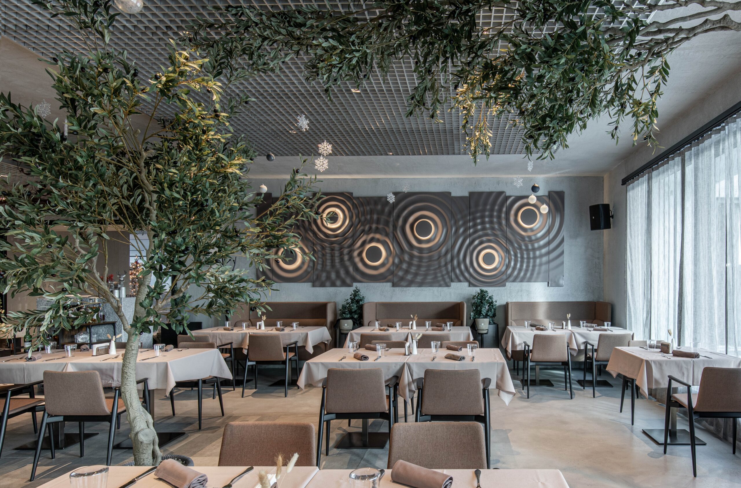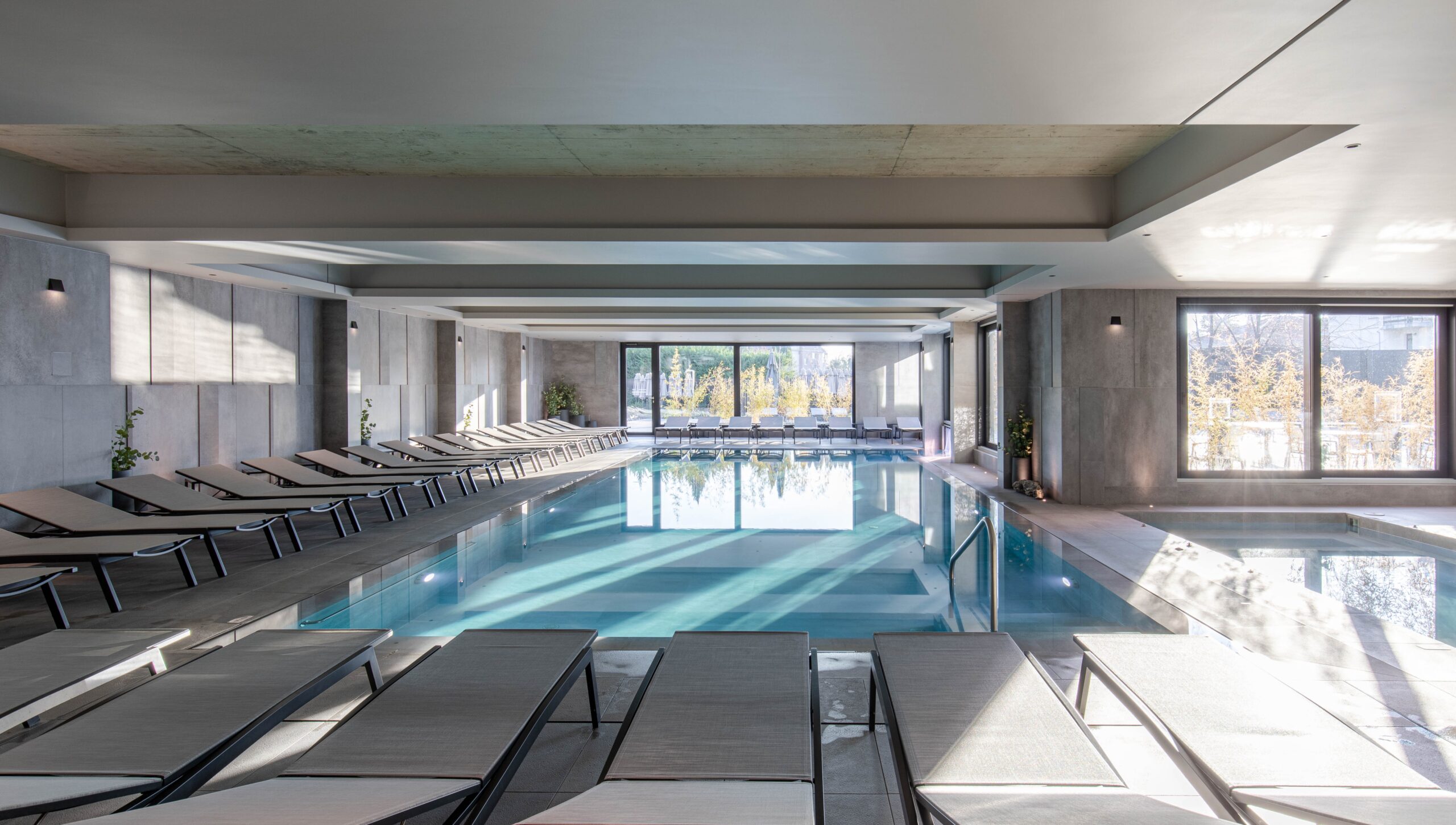AER (Air). The low ceiling heights, inherited from the existing architectural structure of the complex, dictated the design of minimalist spaces with generous facade glazing that frames picturesque views. This subtle design approach allows air, light, and nature to flow perceptibly and deeply into even the most secluded relaxation areas. The resulting sense of lightness, openness, and spaciousness fosters the visitors’ psychological and emotional release.