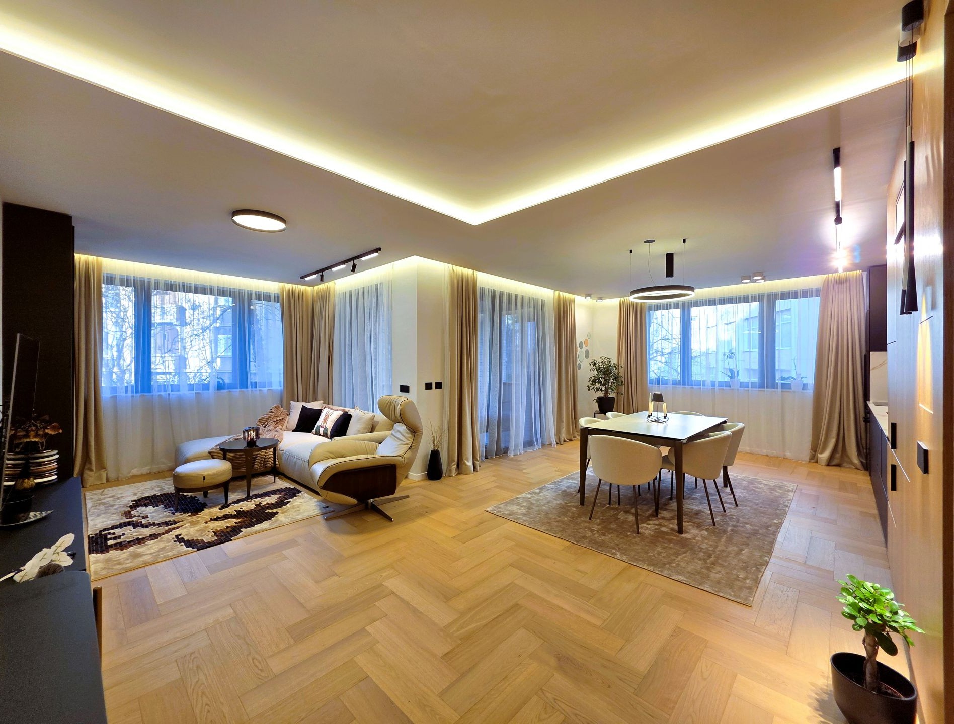 The apartment is located in one of Sofia’s prestigious residential neighborhoods, within a gated complex offering controlled access and a calm, landscaped environment.
