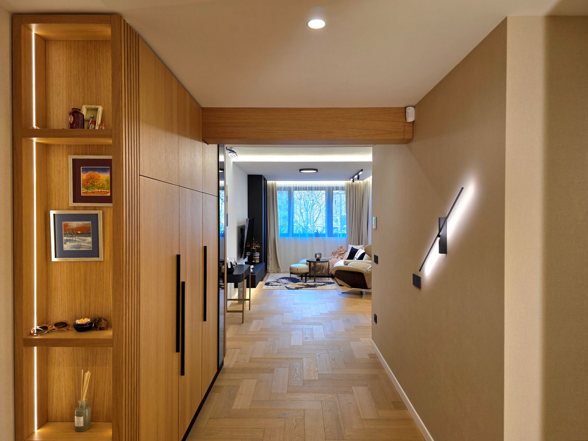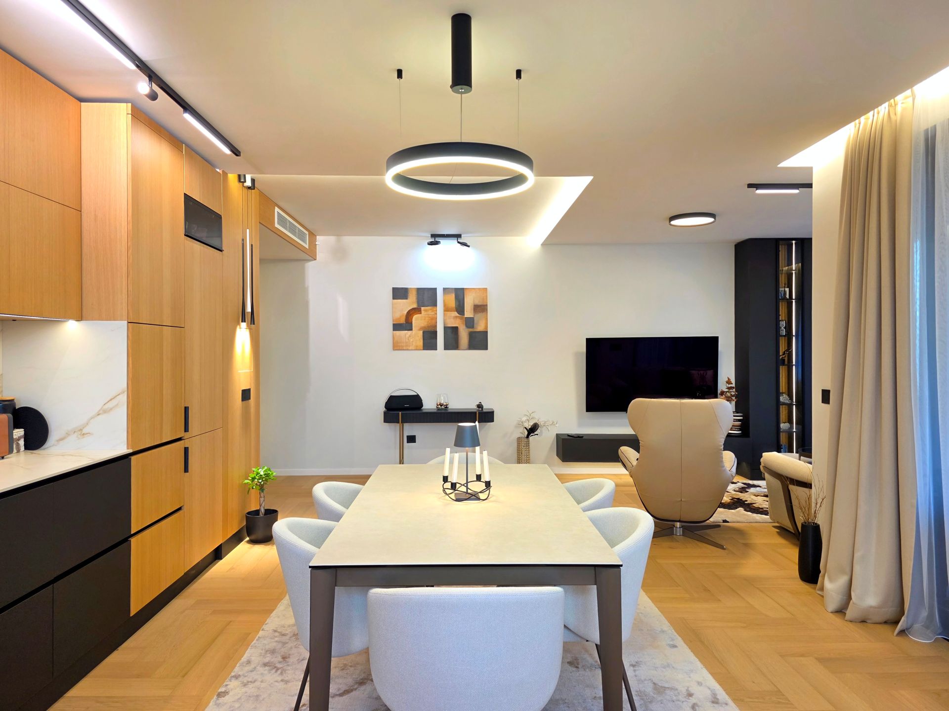 The project presents a contemporary home where a modern interior language is balanced with subtle classical references. The space is conceived as a coherent and logical composition in which functionality and aesthetics coexist in harmony, without competing with one another.